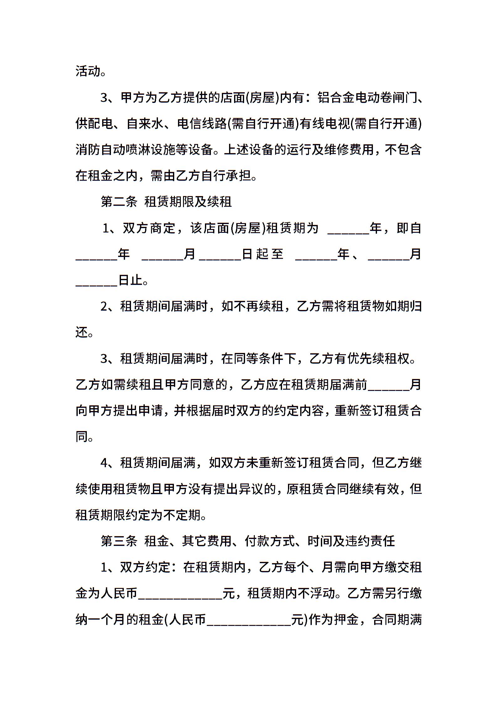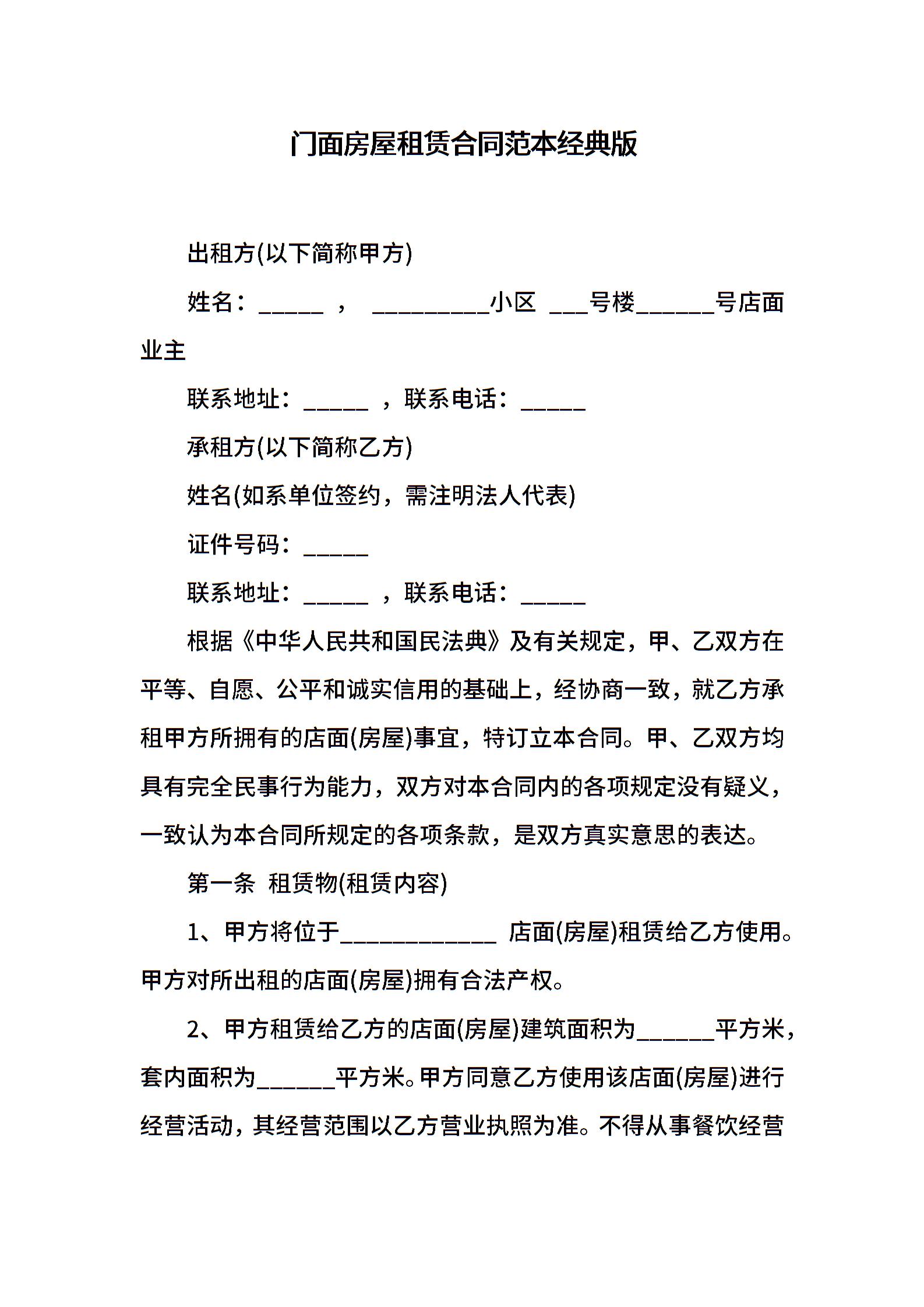 门面房屋租赁合同范本经典版