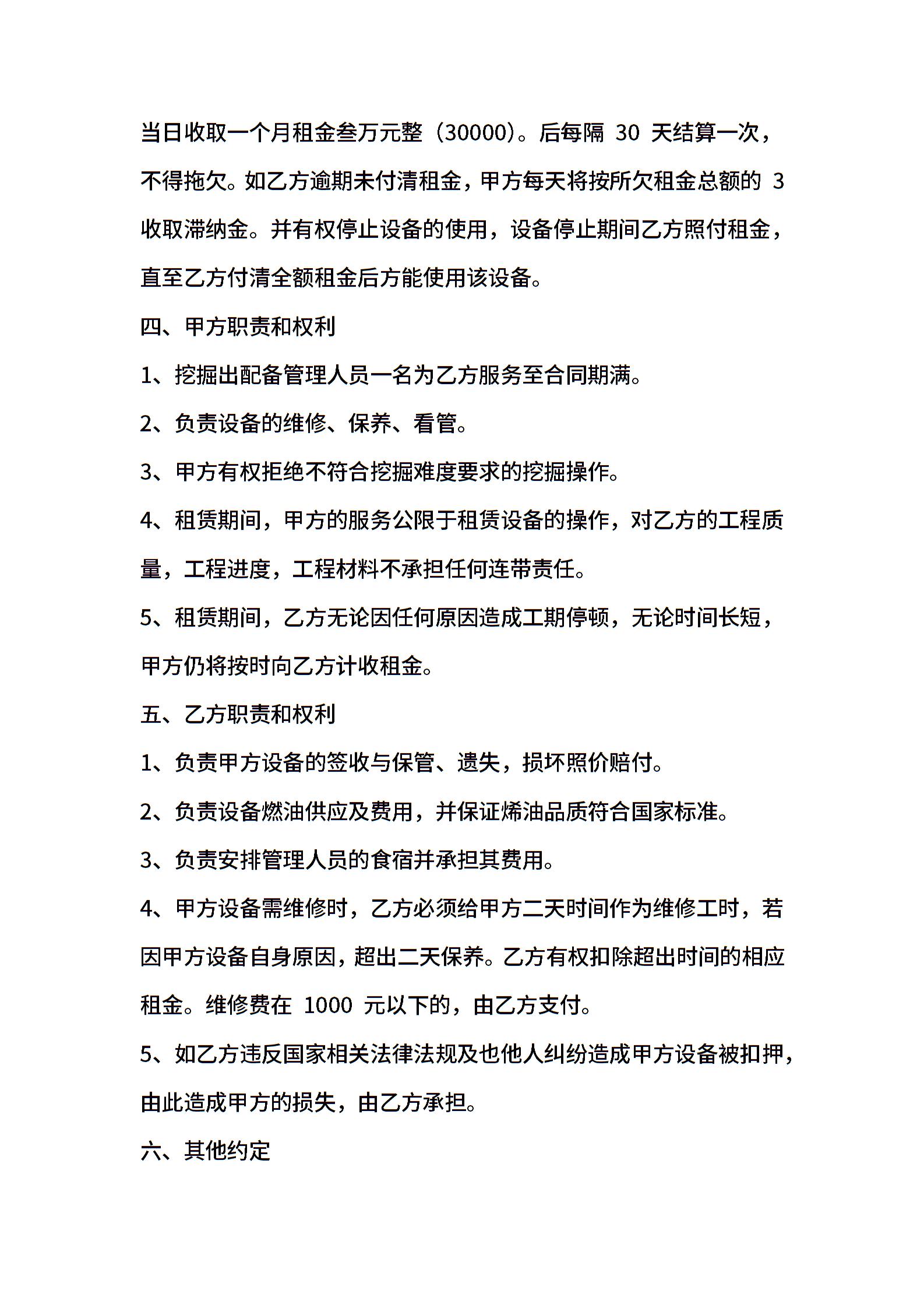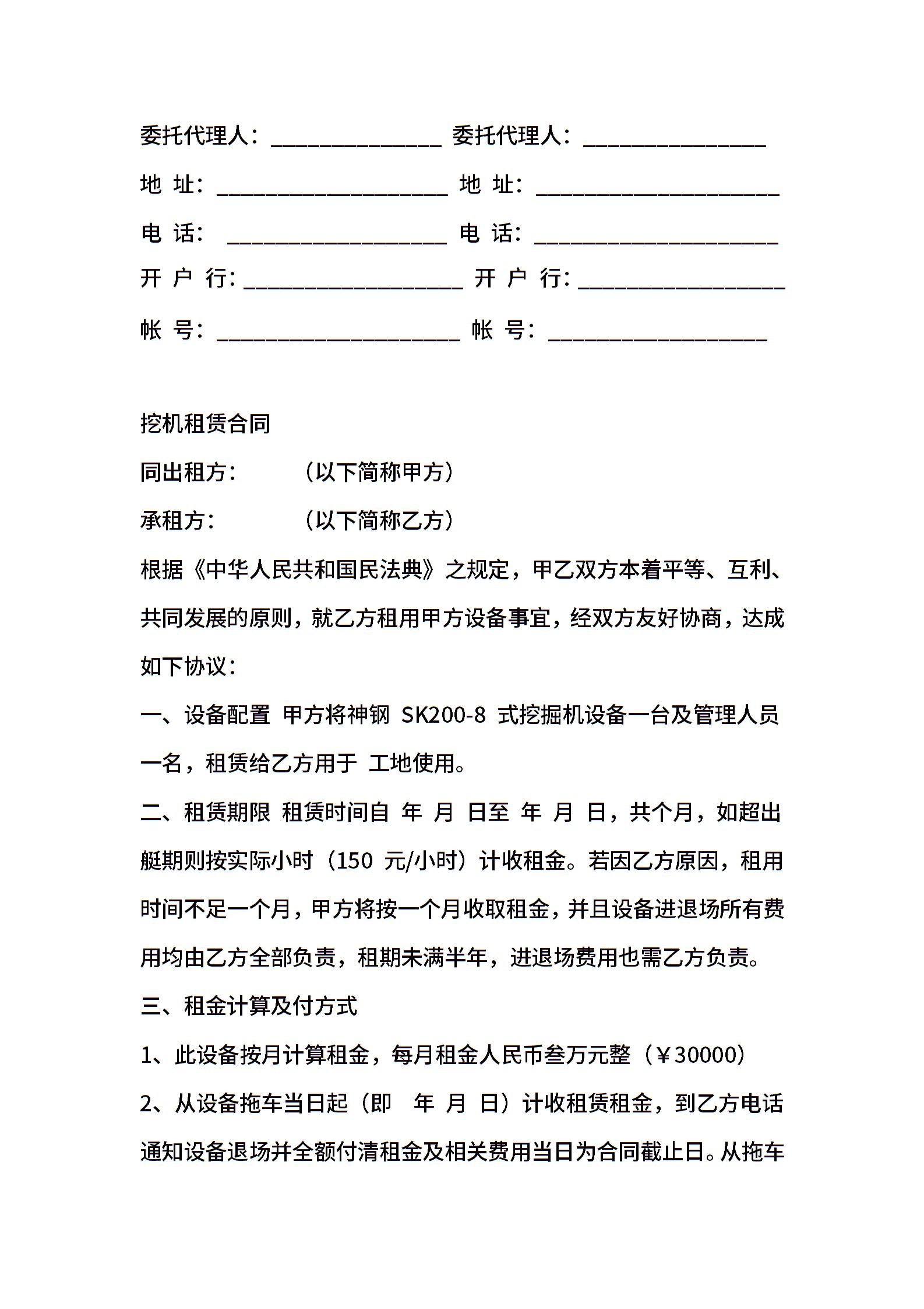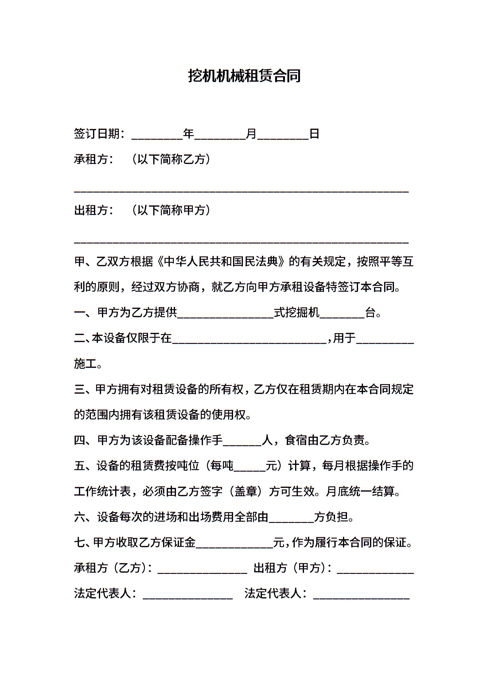 挖机机械租赁合同