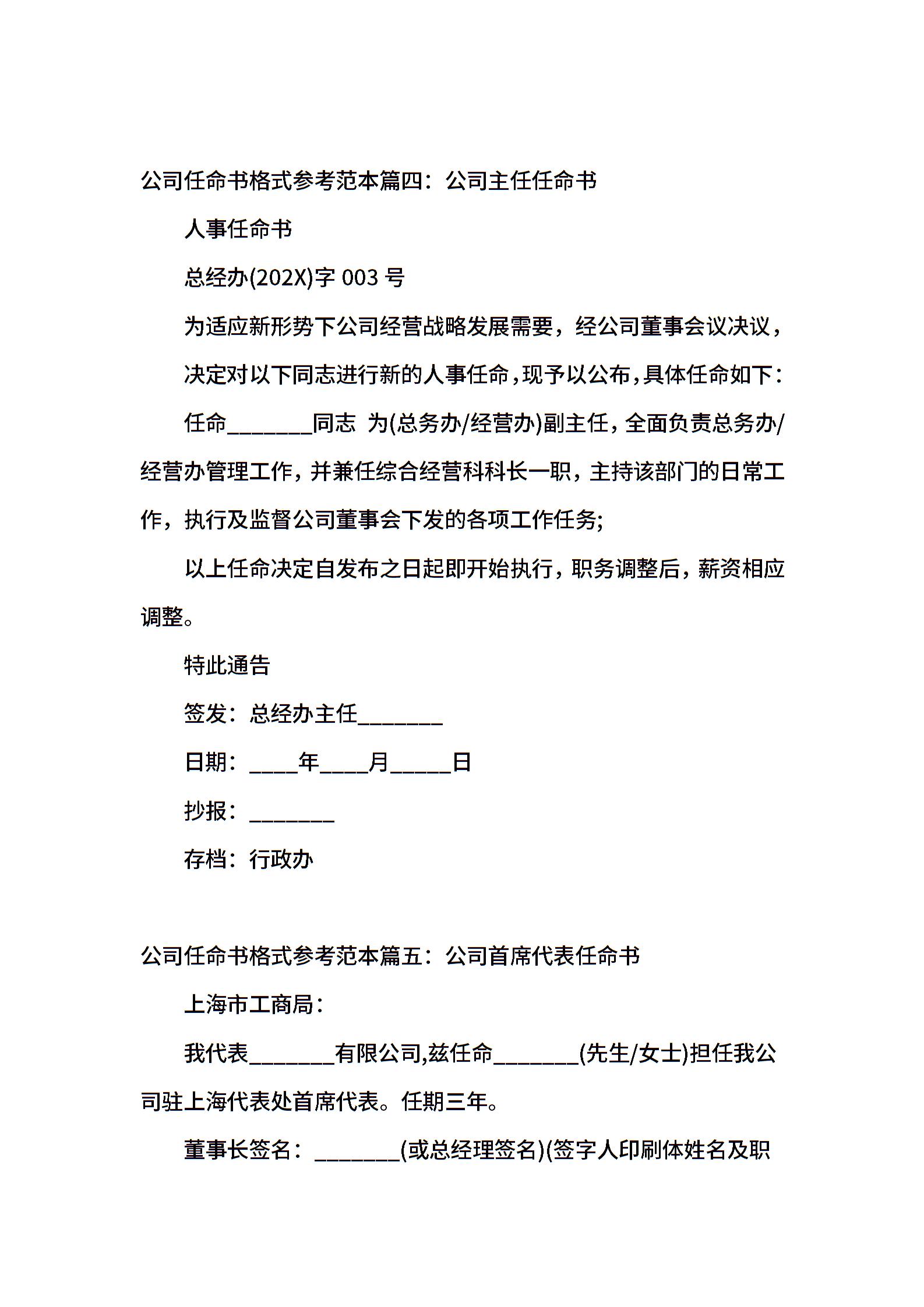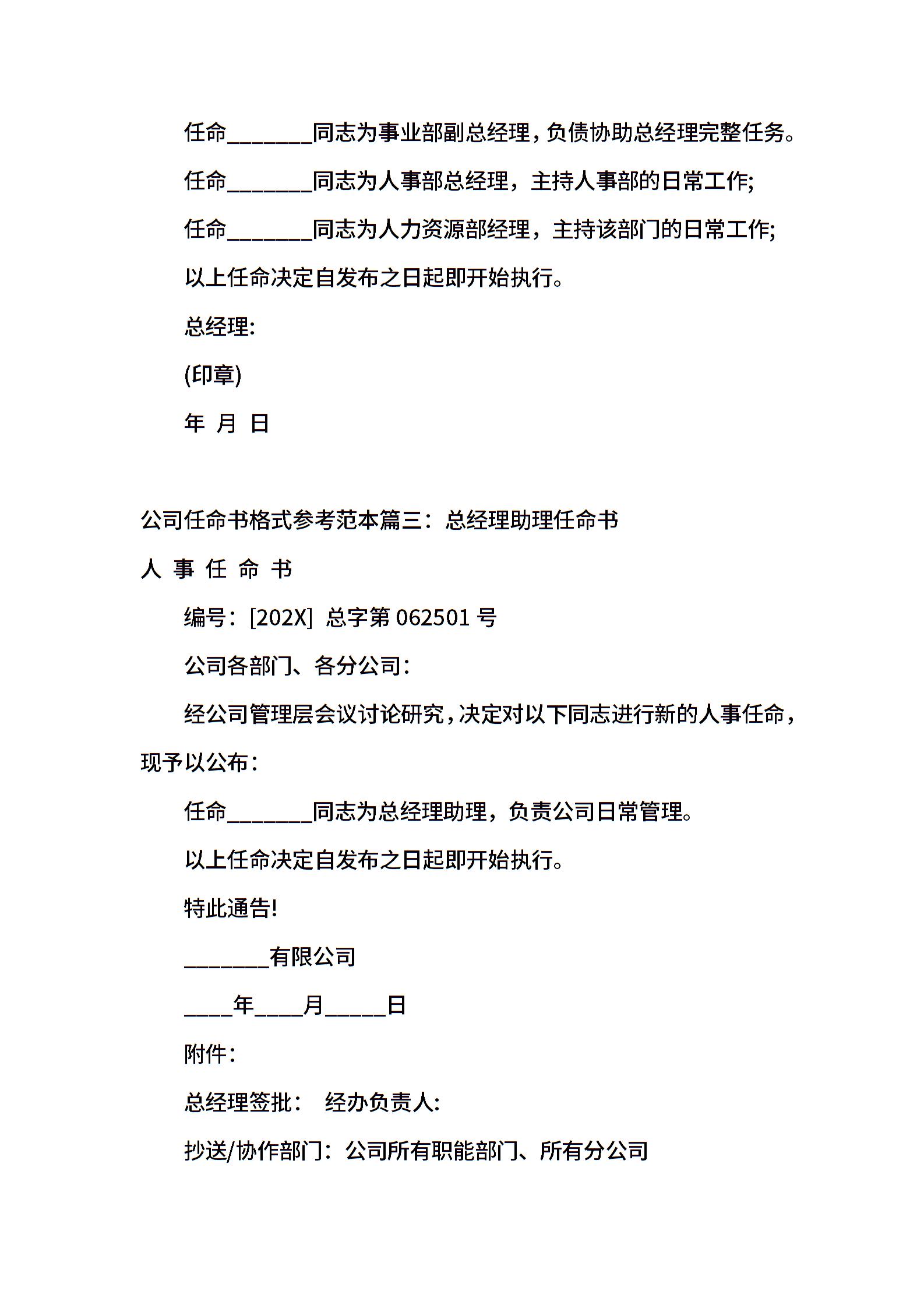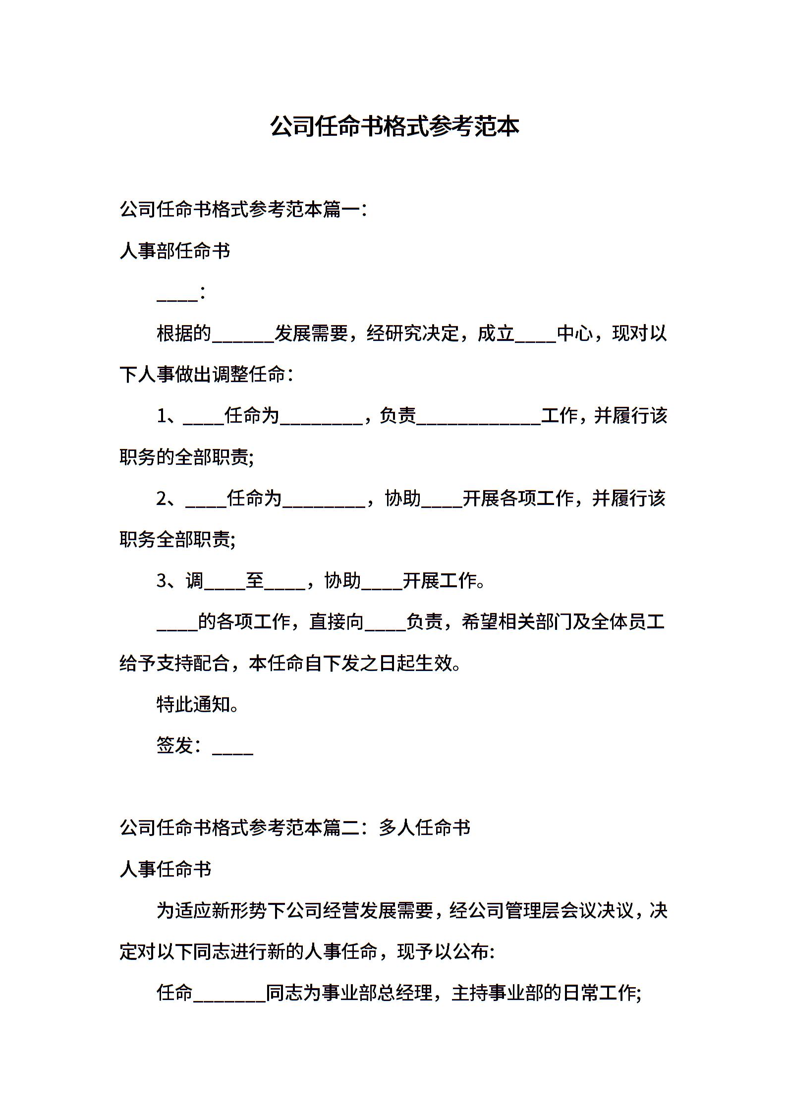 公司任命书格式参考范本