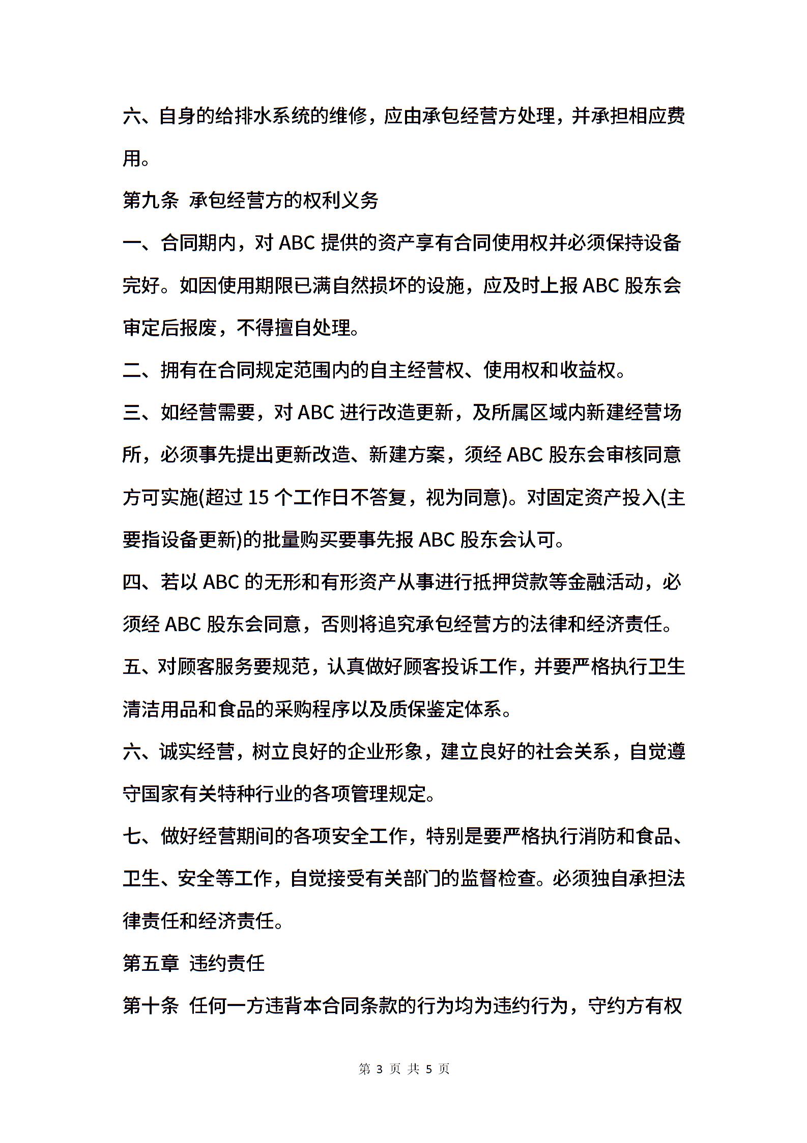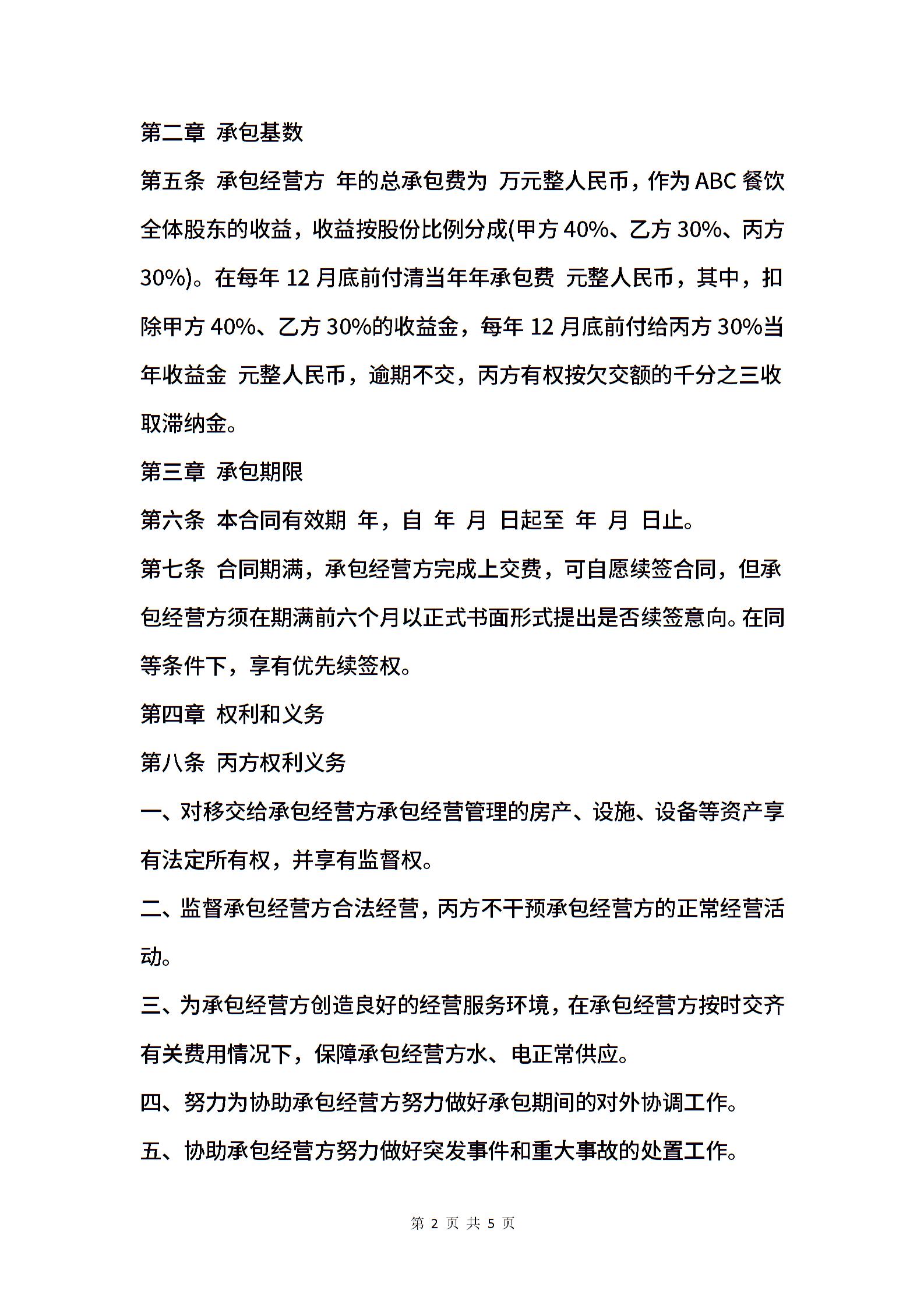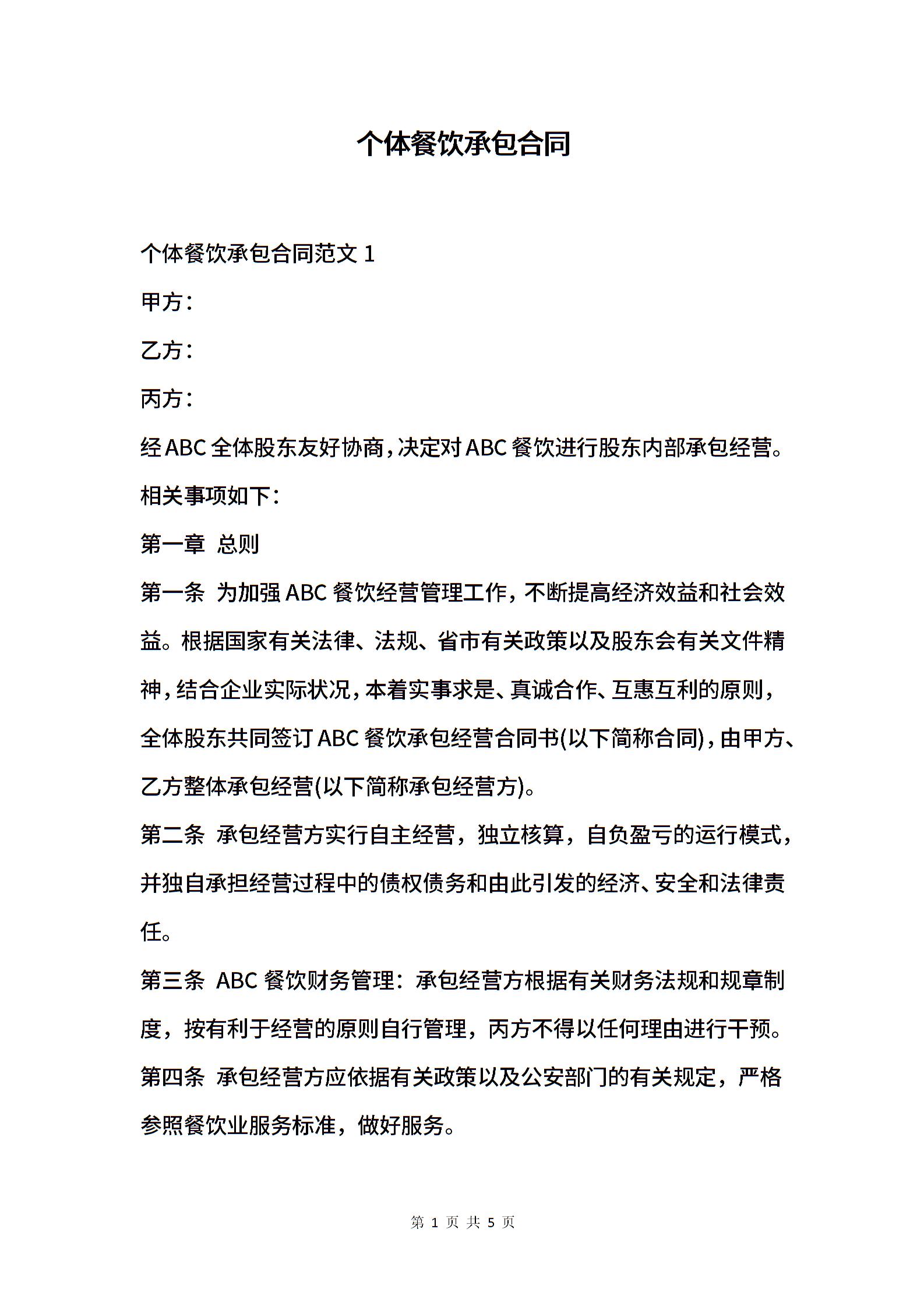 个体餐饮承包合同