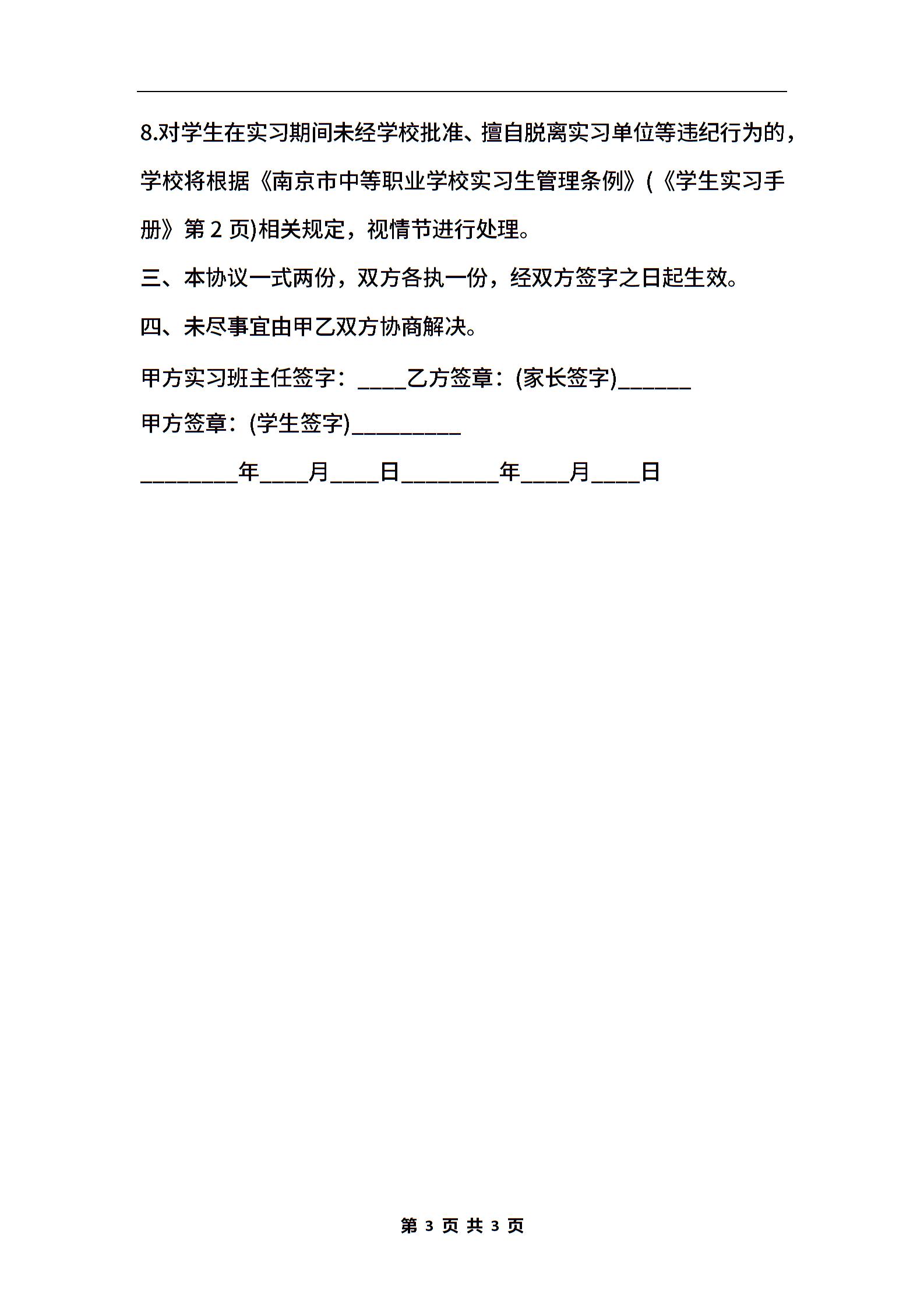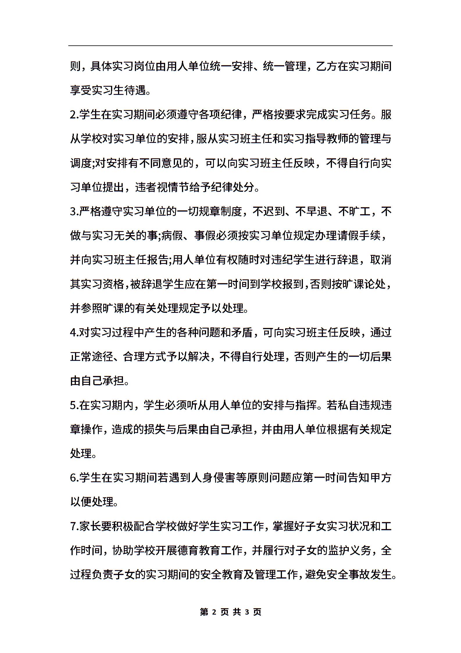在校生实习协议书
