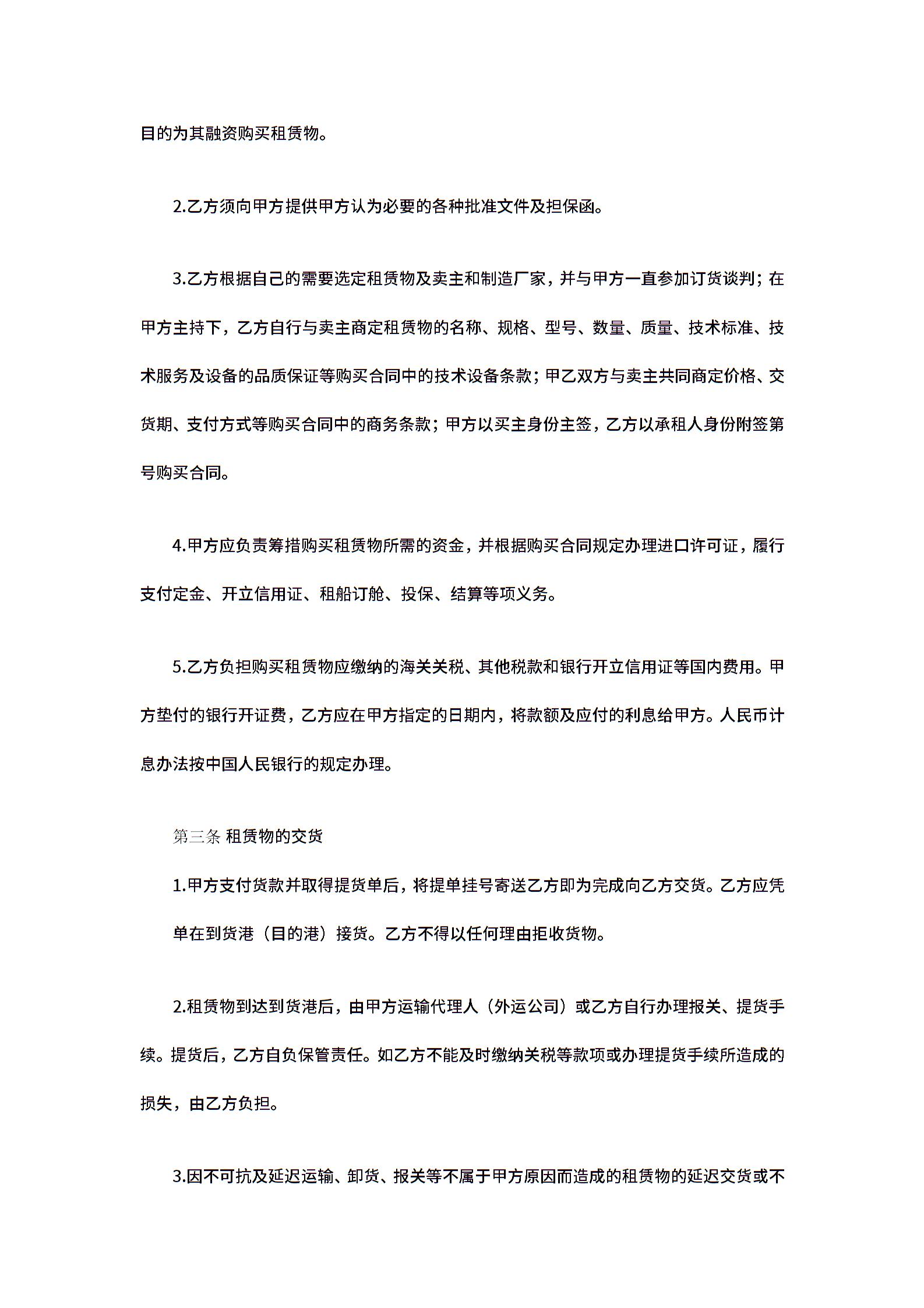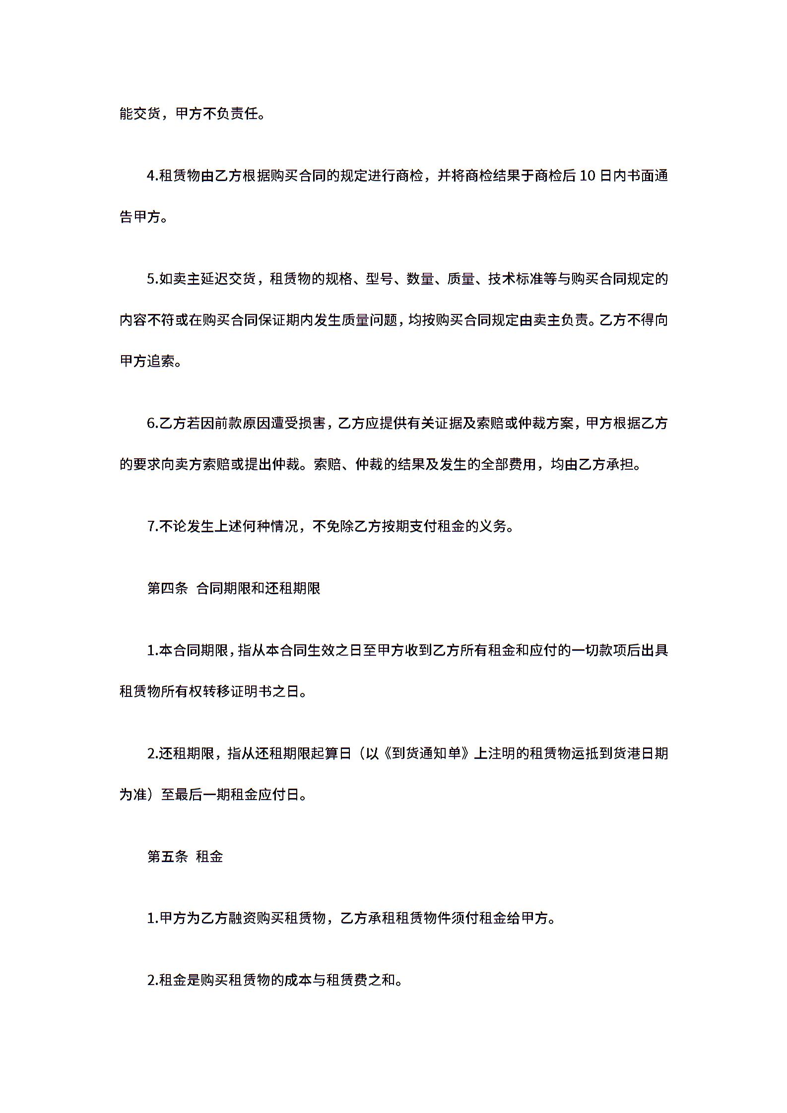 融资租赁合同样式范本