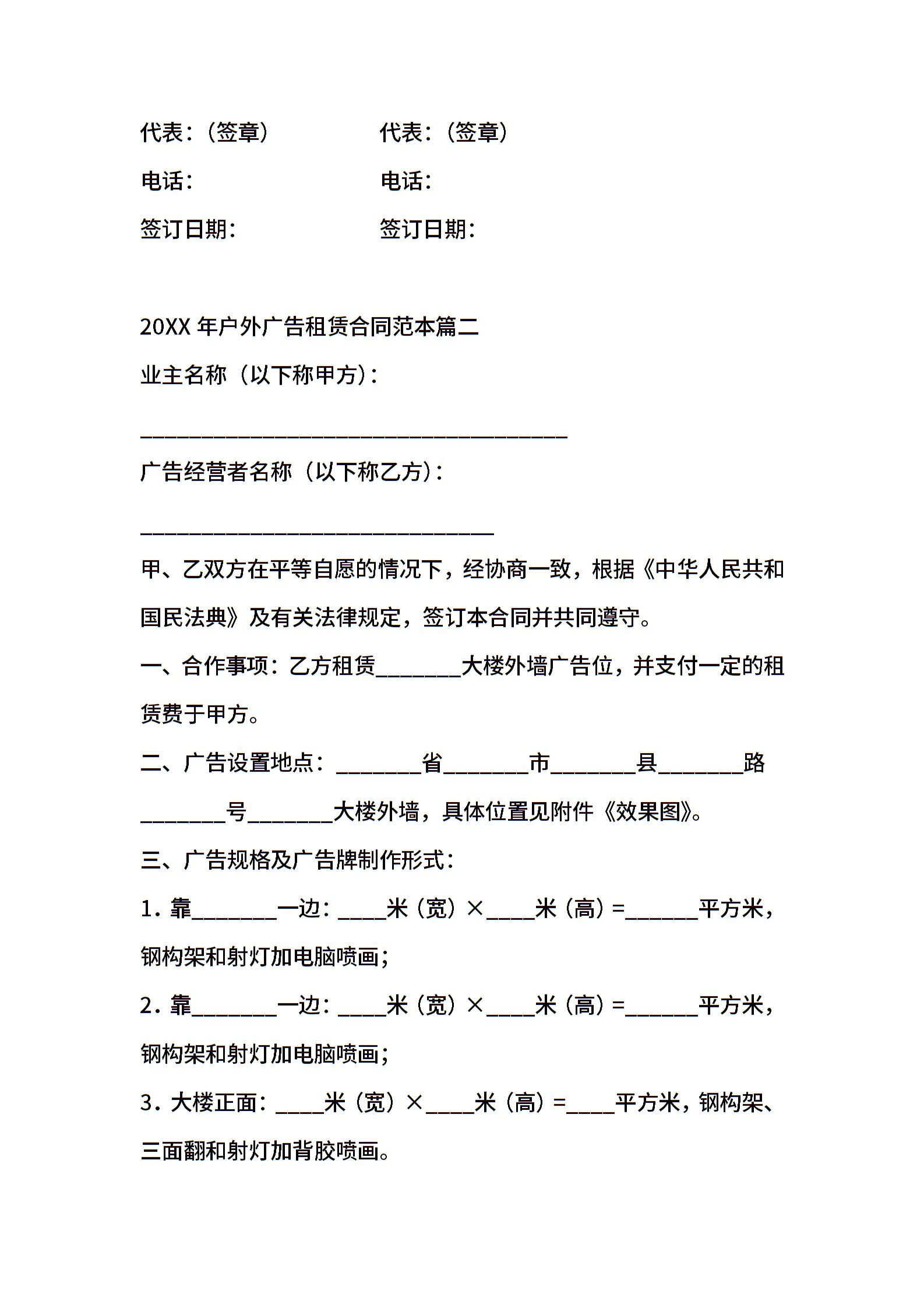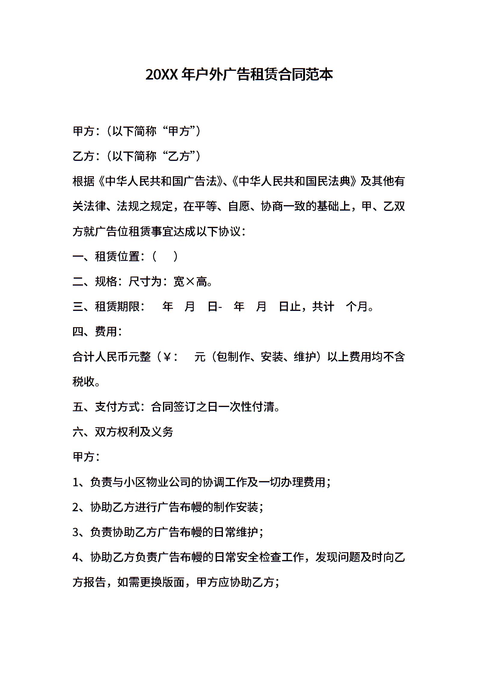2021年户外广告租赁合同范本