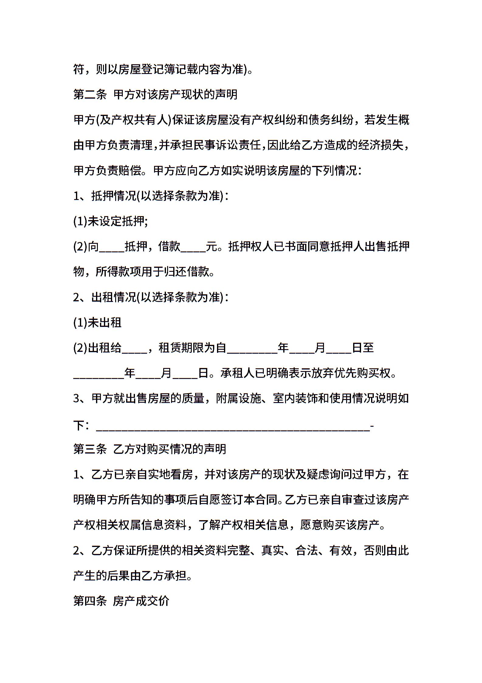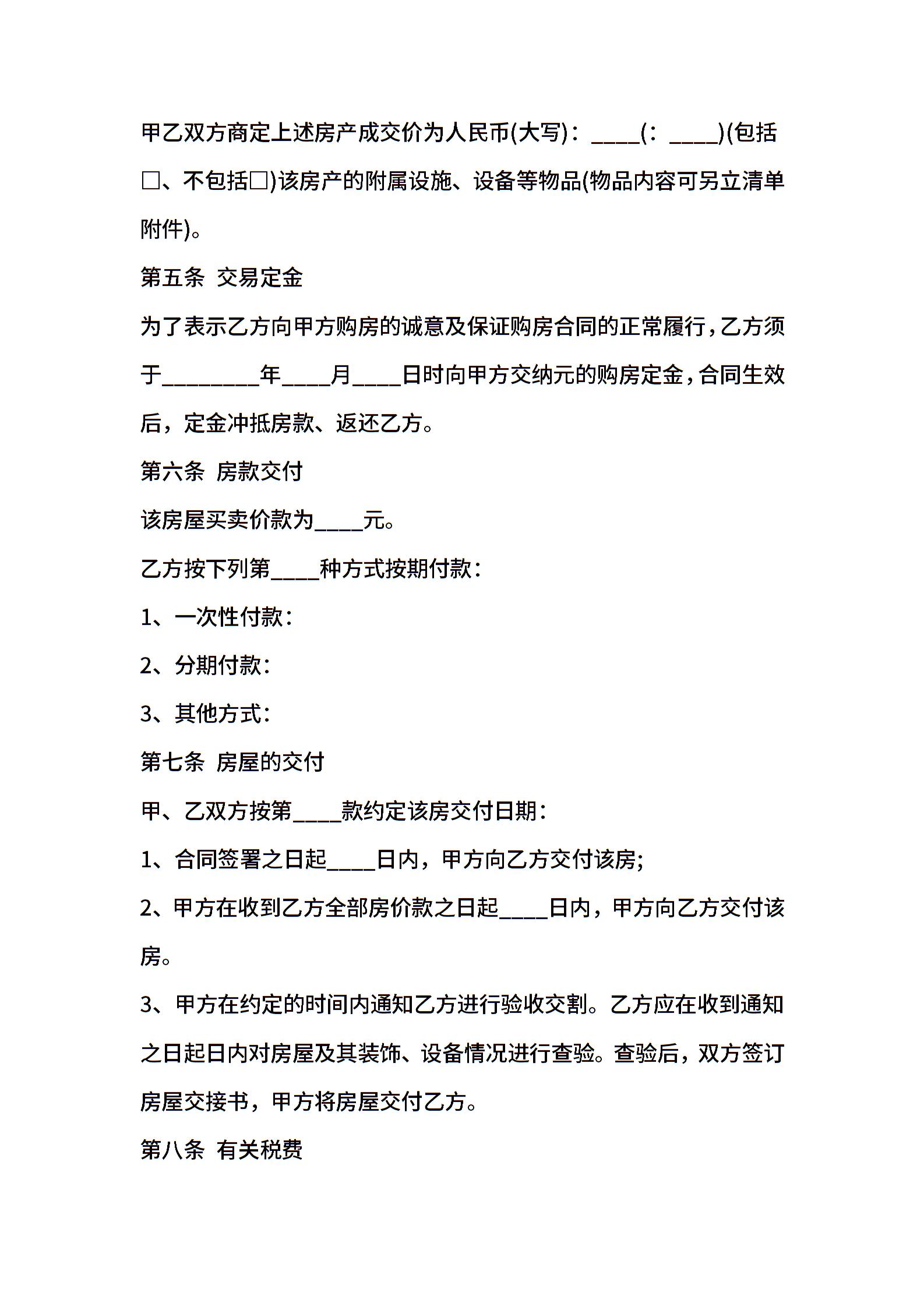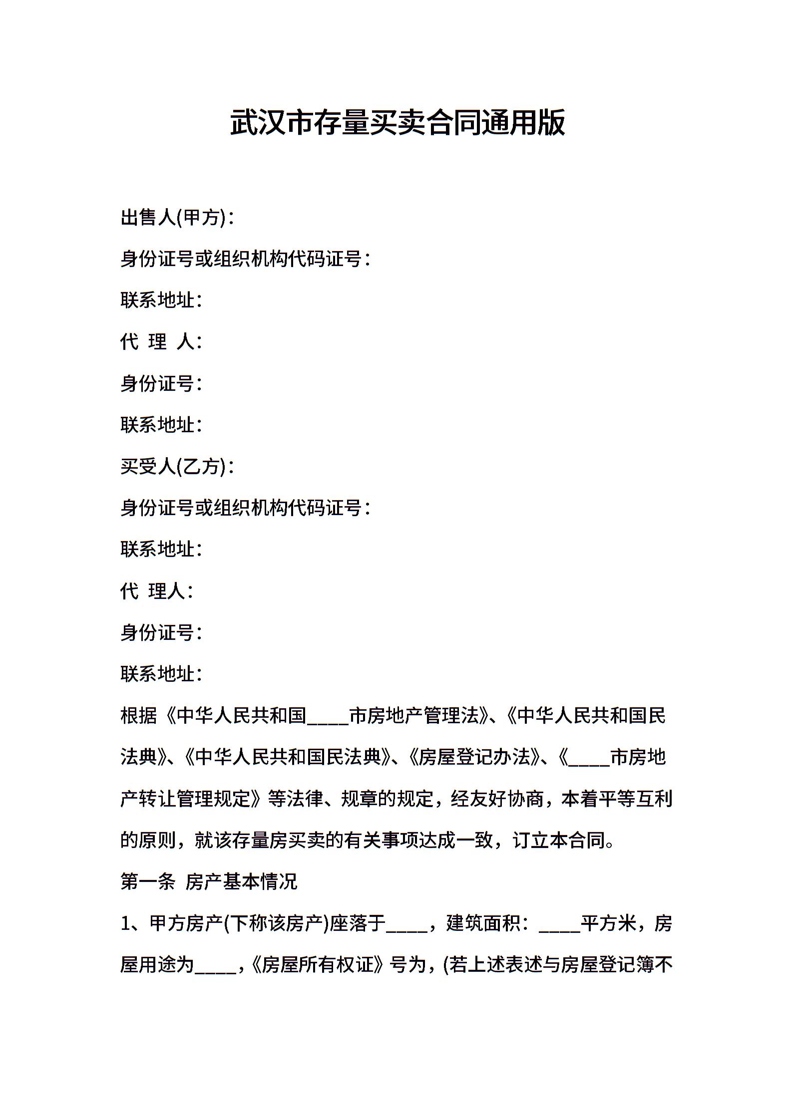 武汉市存量买卖合同通用版