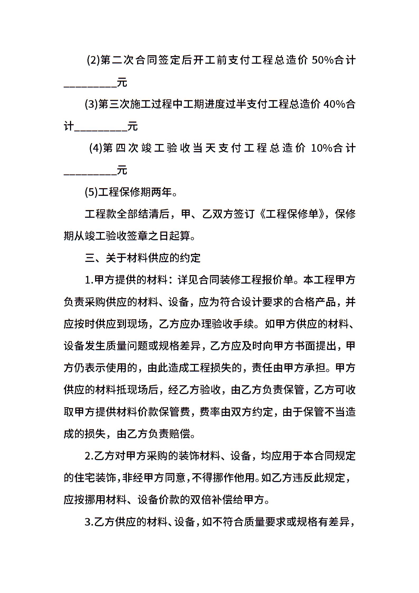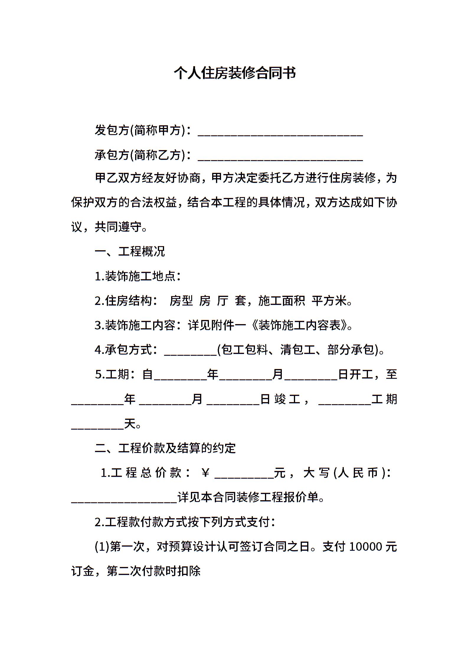 个人住房装修合同书