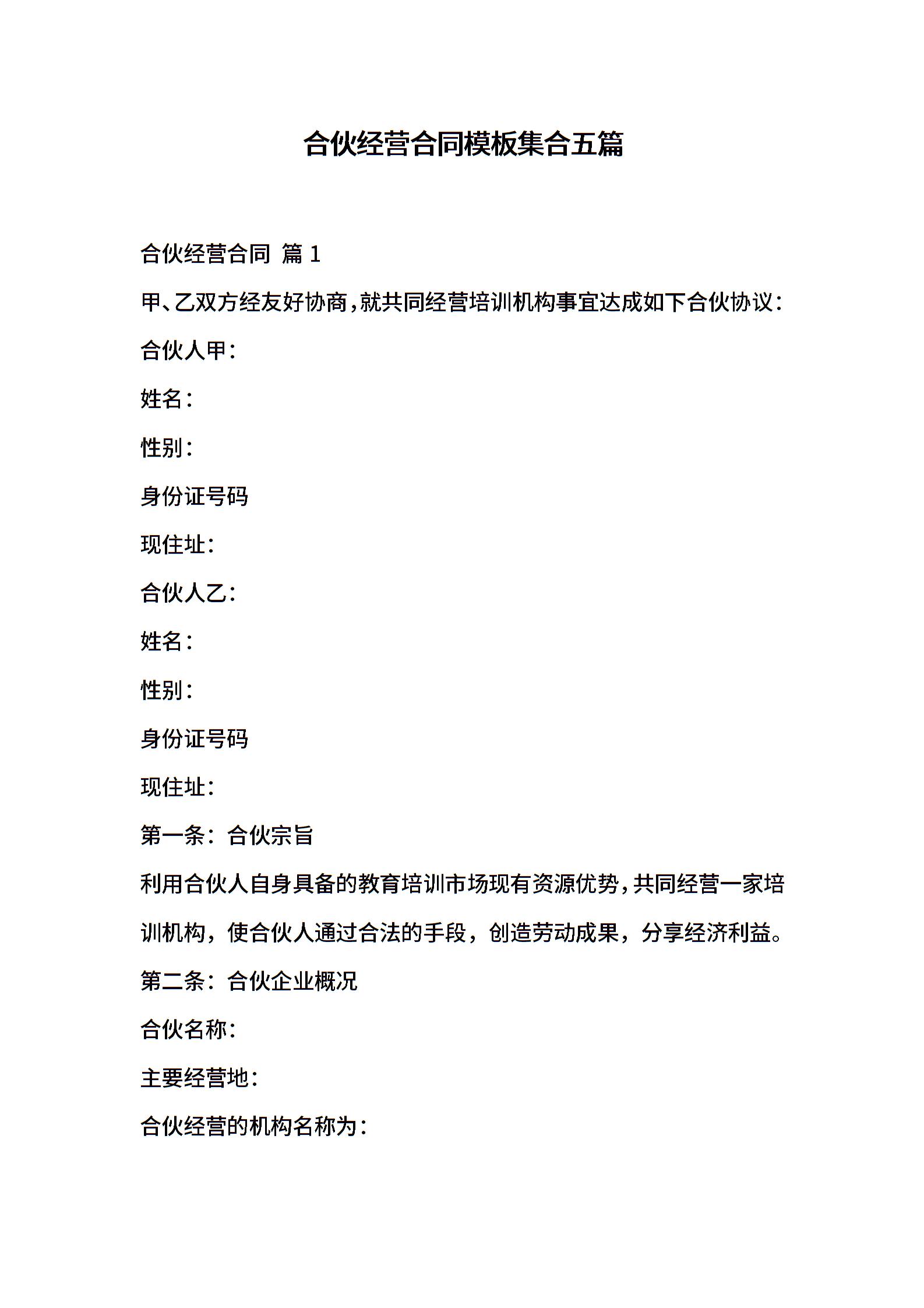 合伙经营合同模板集合五篇