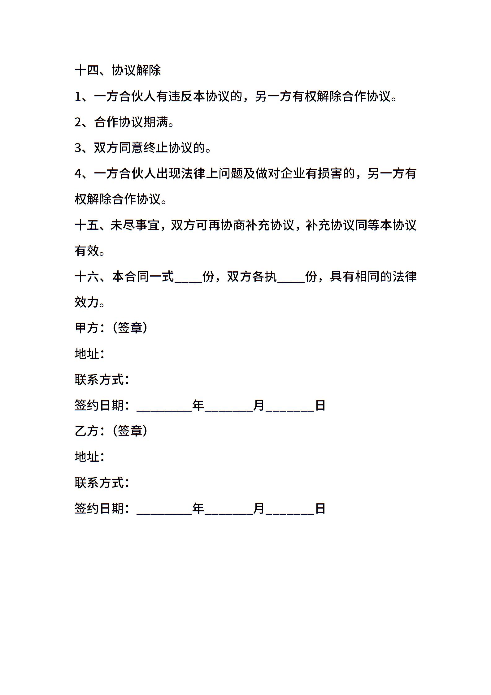 当前位置:量子办公 > 合同模板 > 合作合同 >