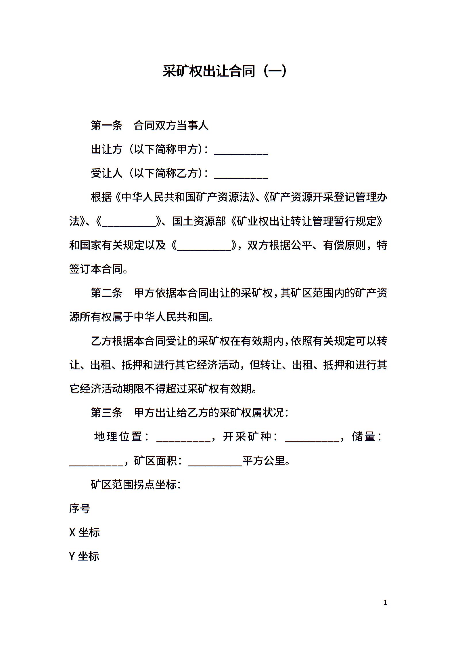 采矿权出让合同(一)
