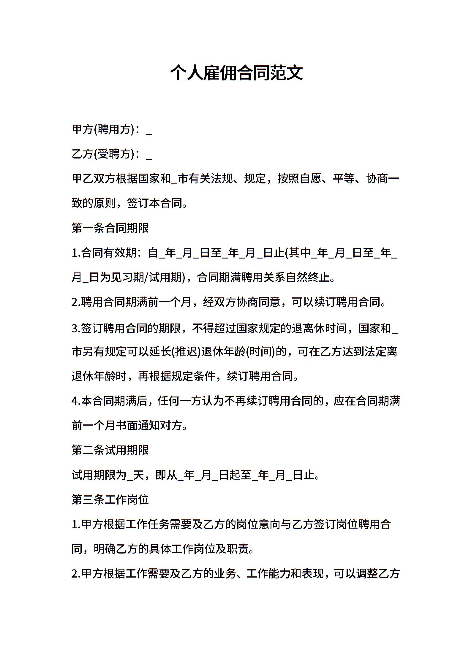 2021年个人雇佣合同范文