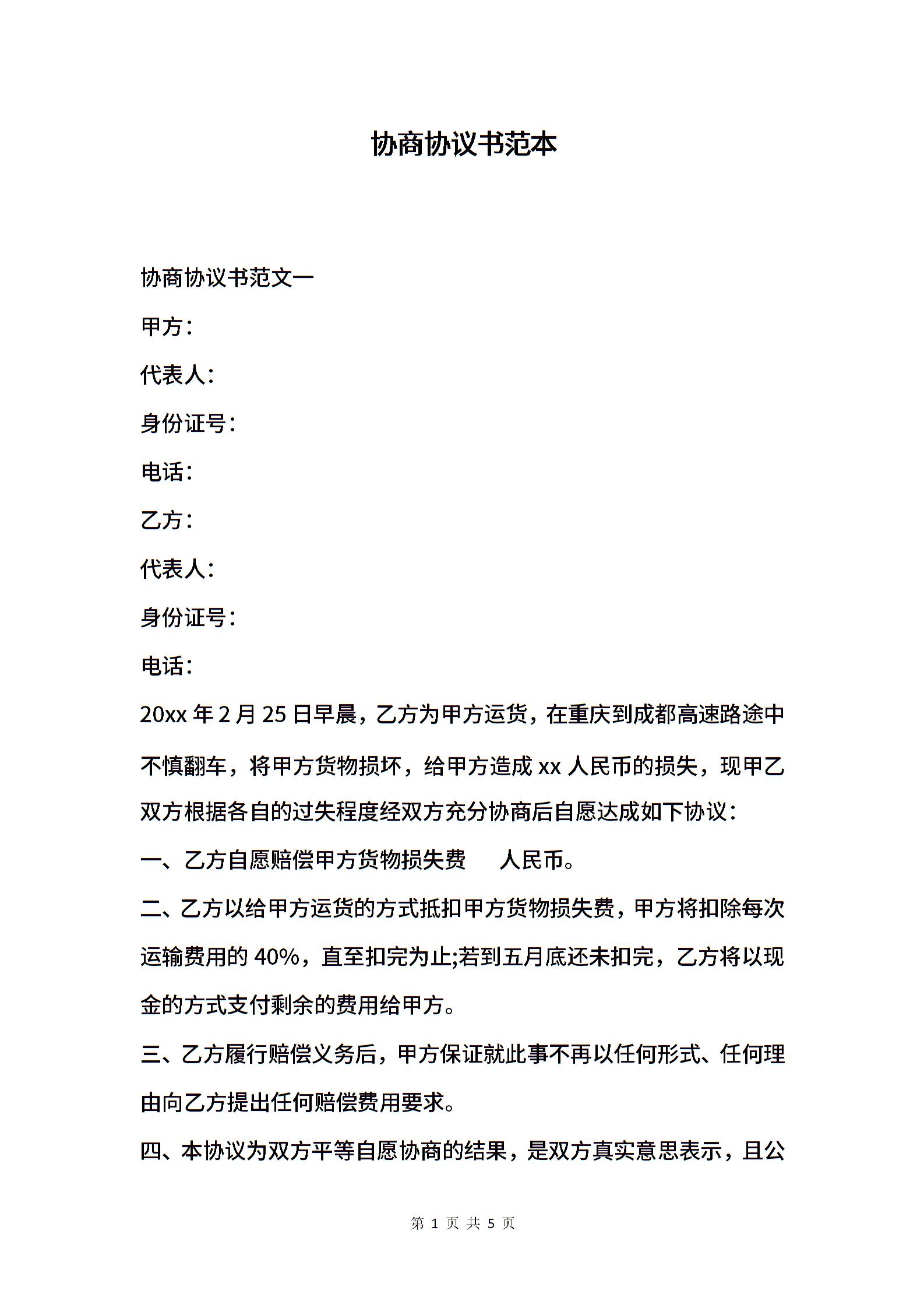 协商协议书范本