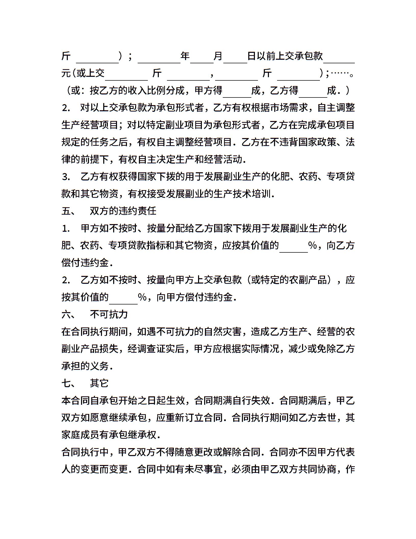 承包合同书(农副业)
