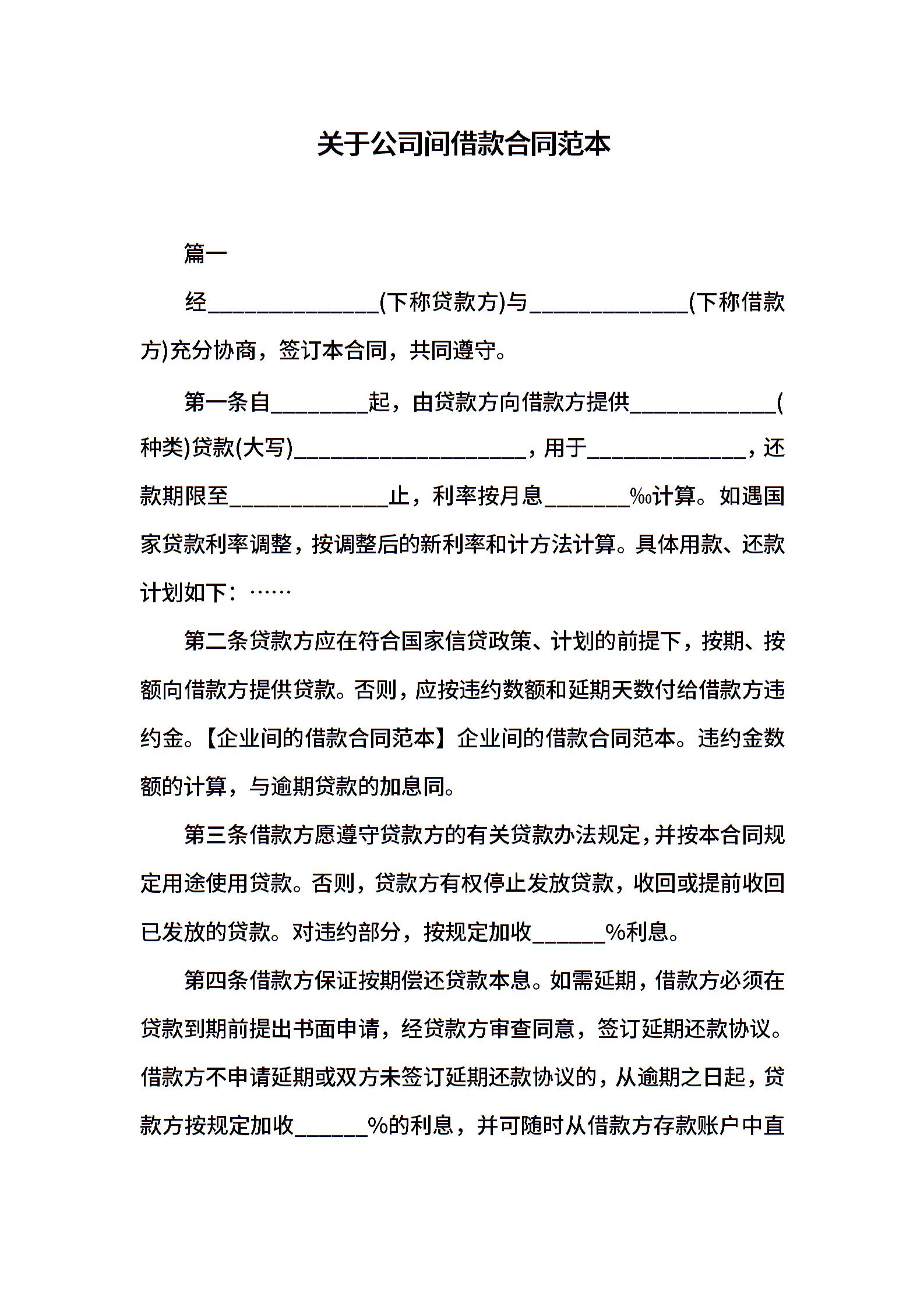 关于公司间借款合同范本