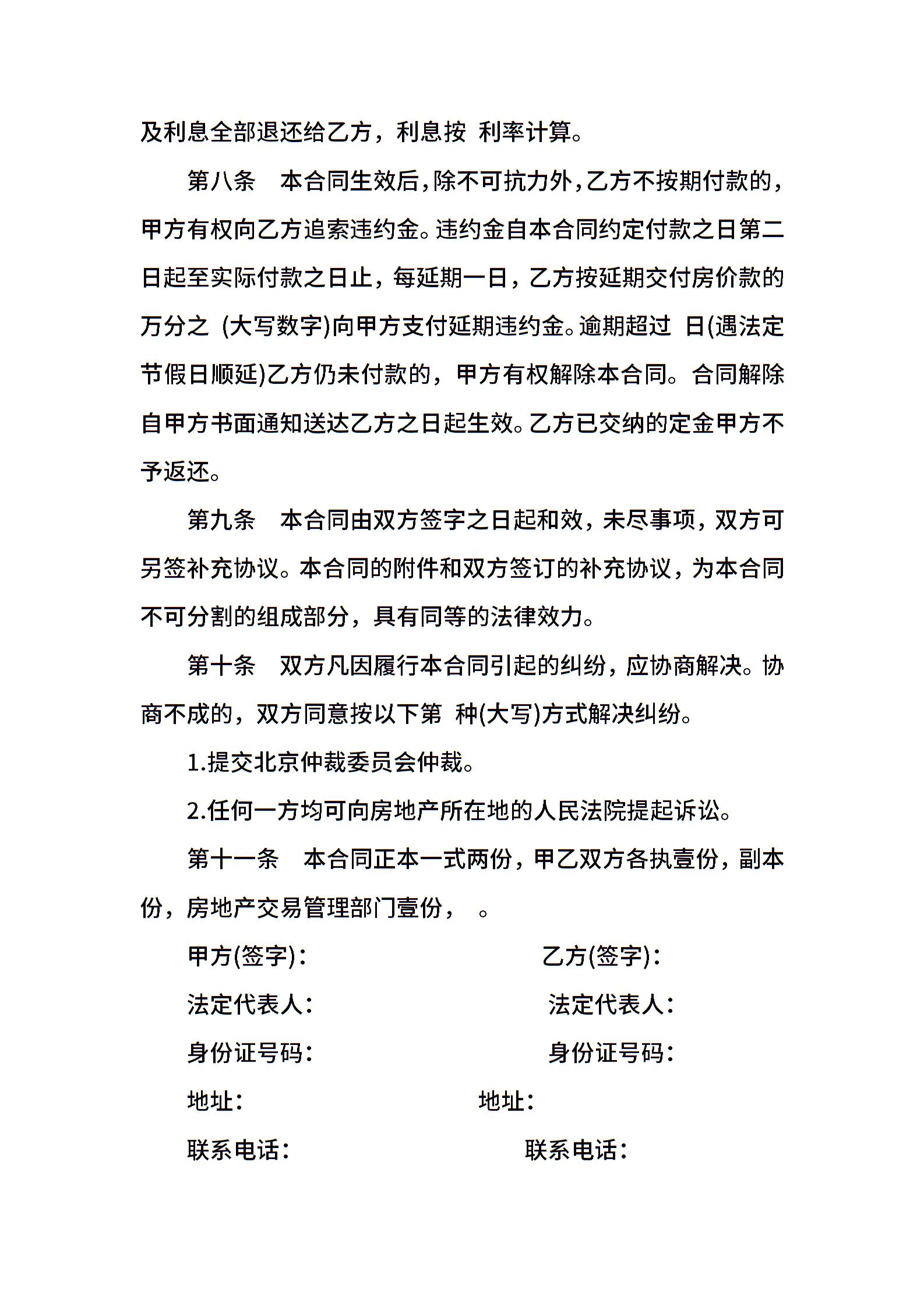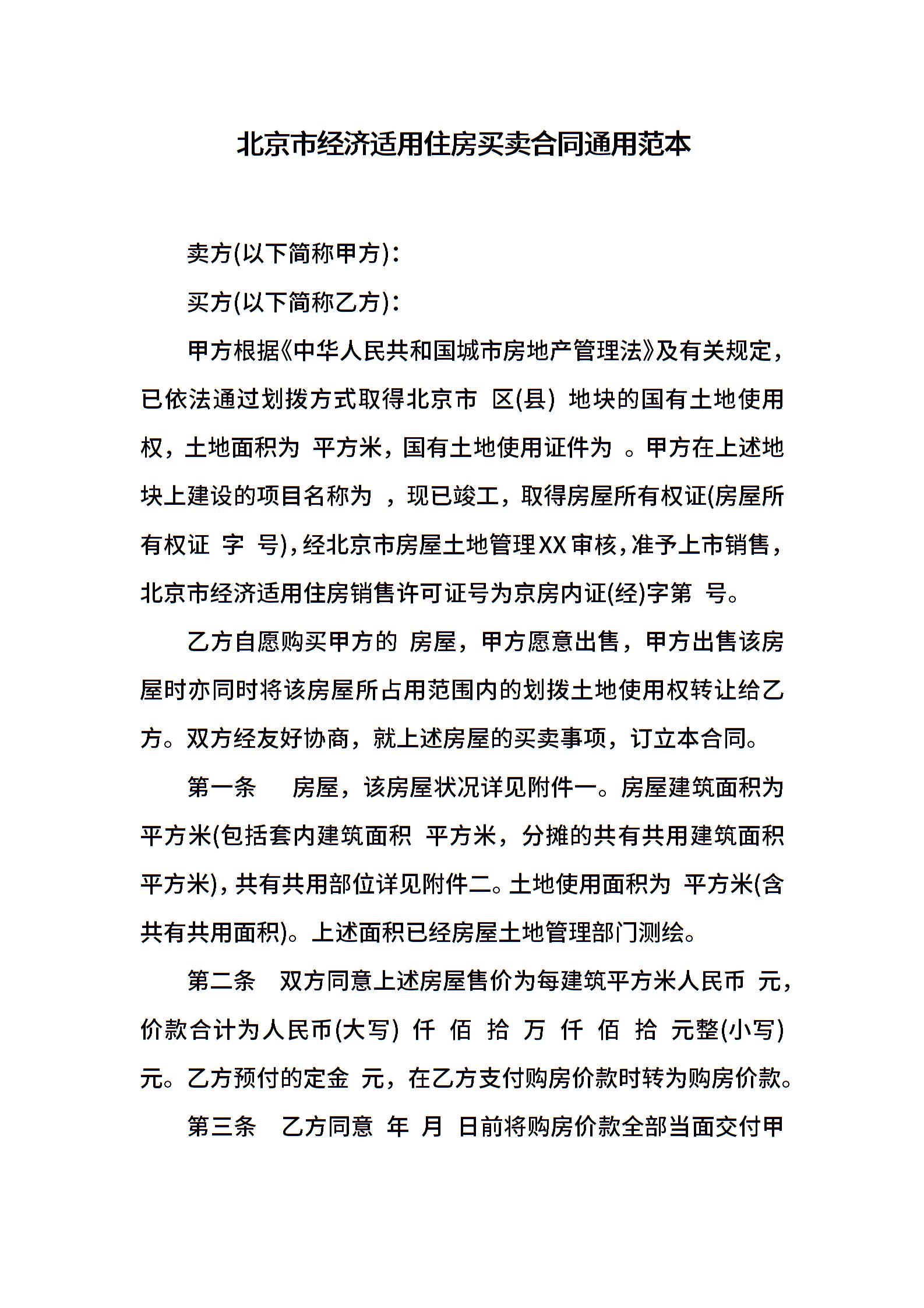 北京市经济适用住房买卖合同通用范本