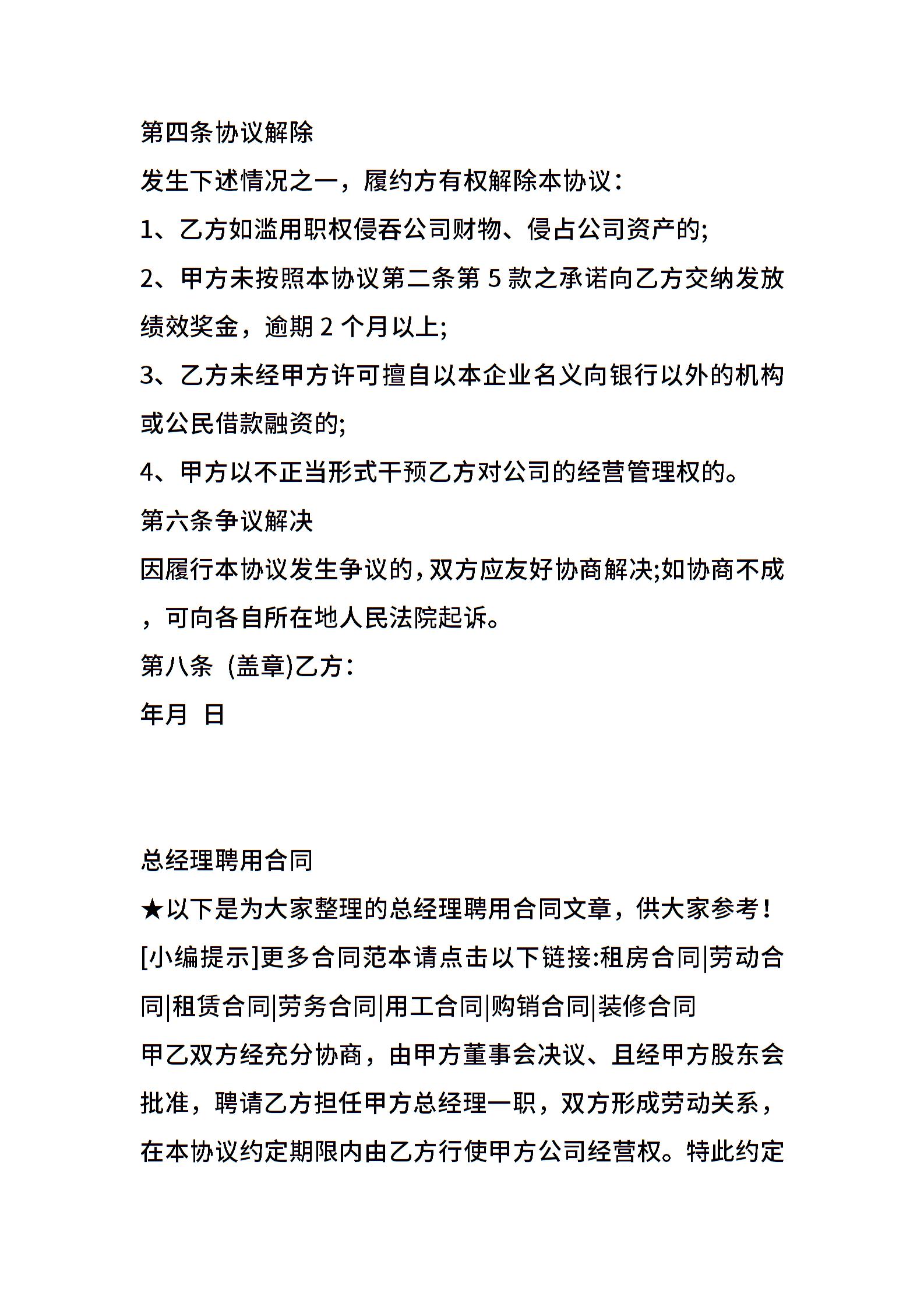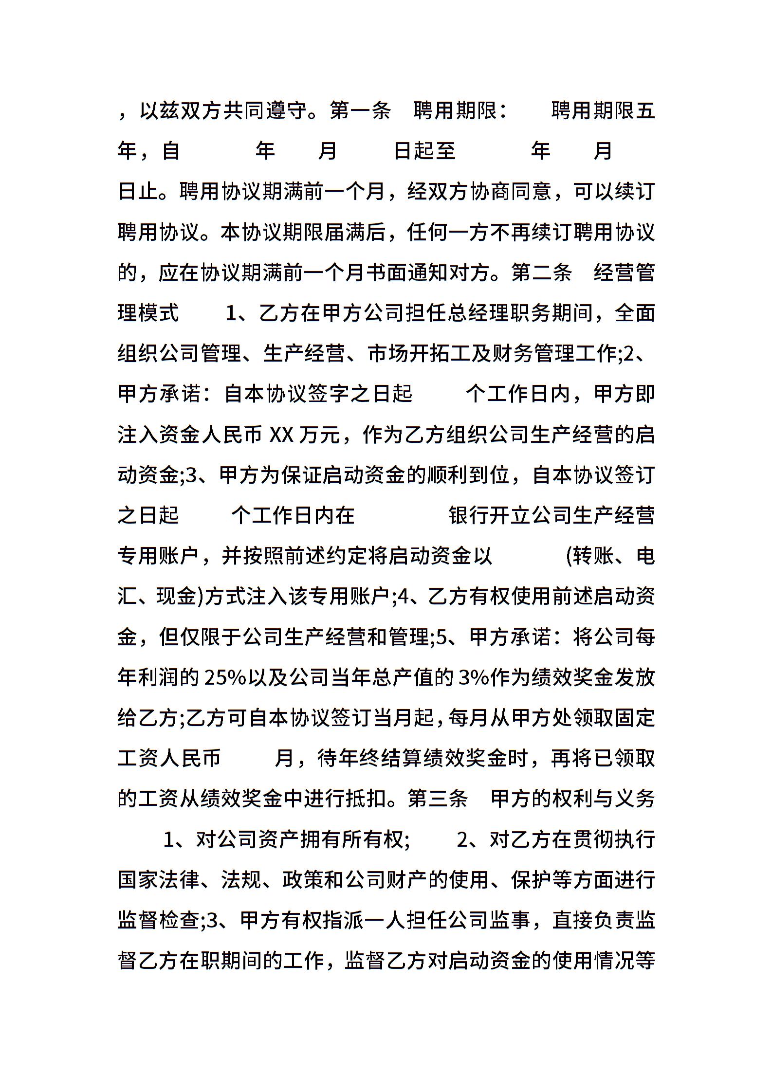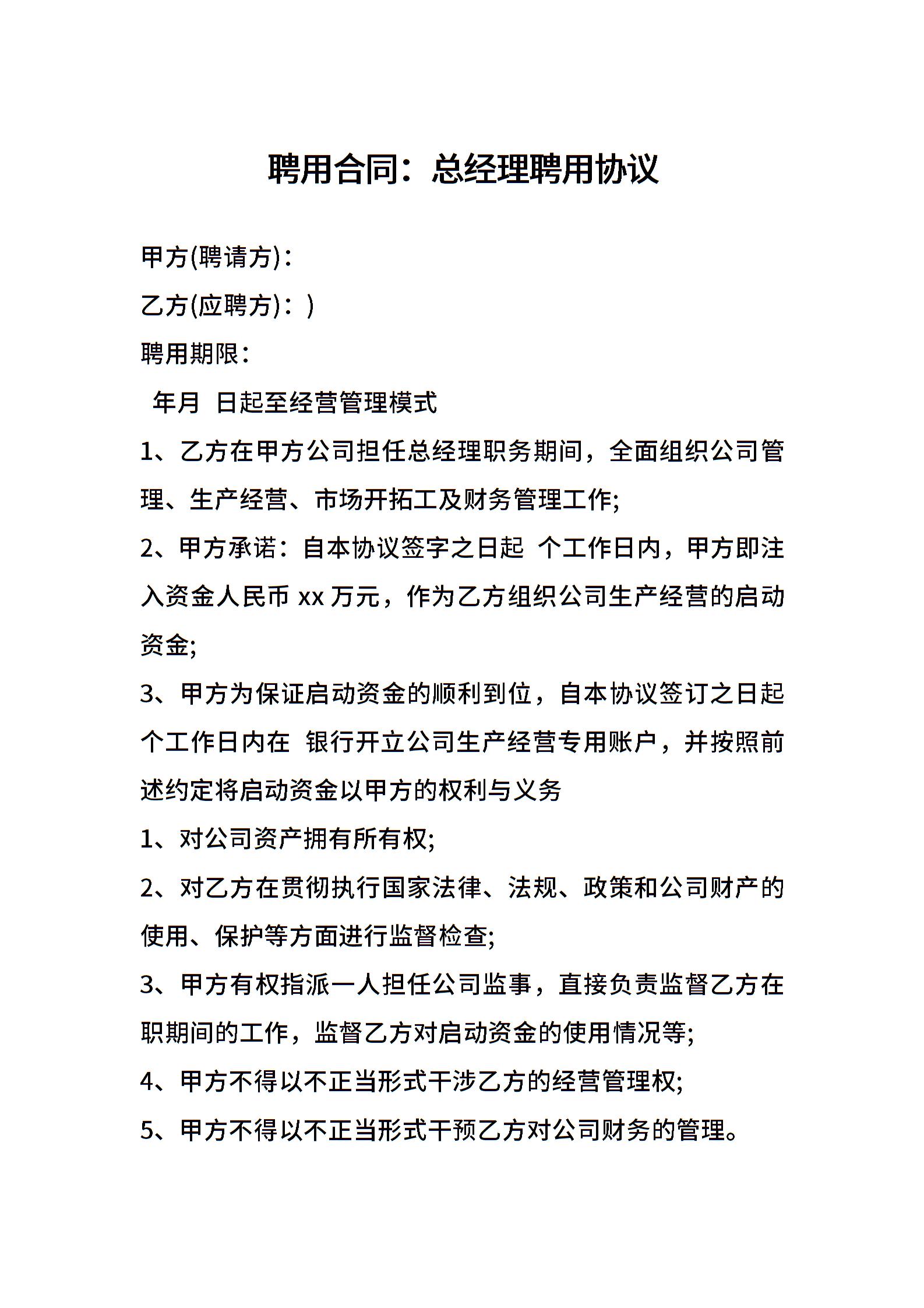 聘用合同:总经理聘用协议