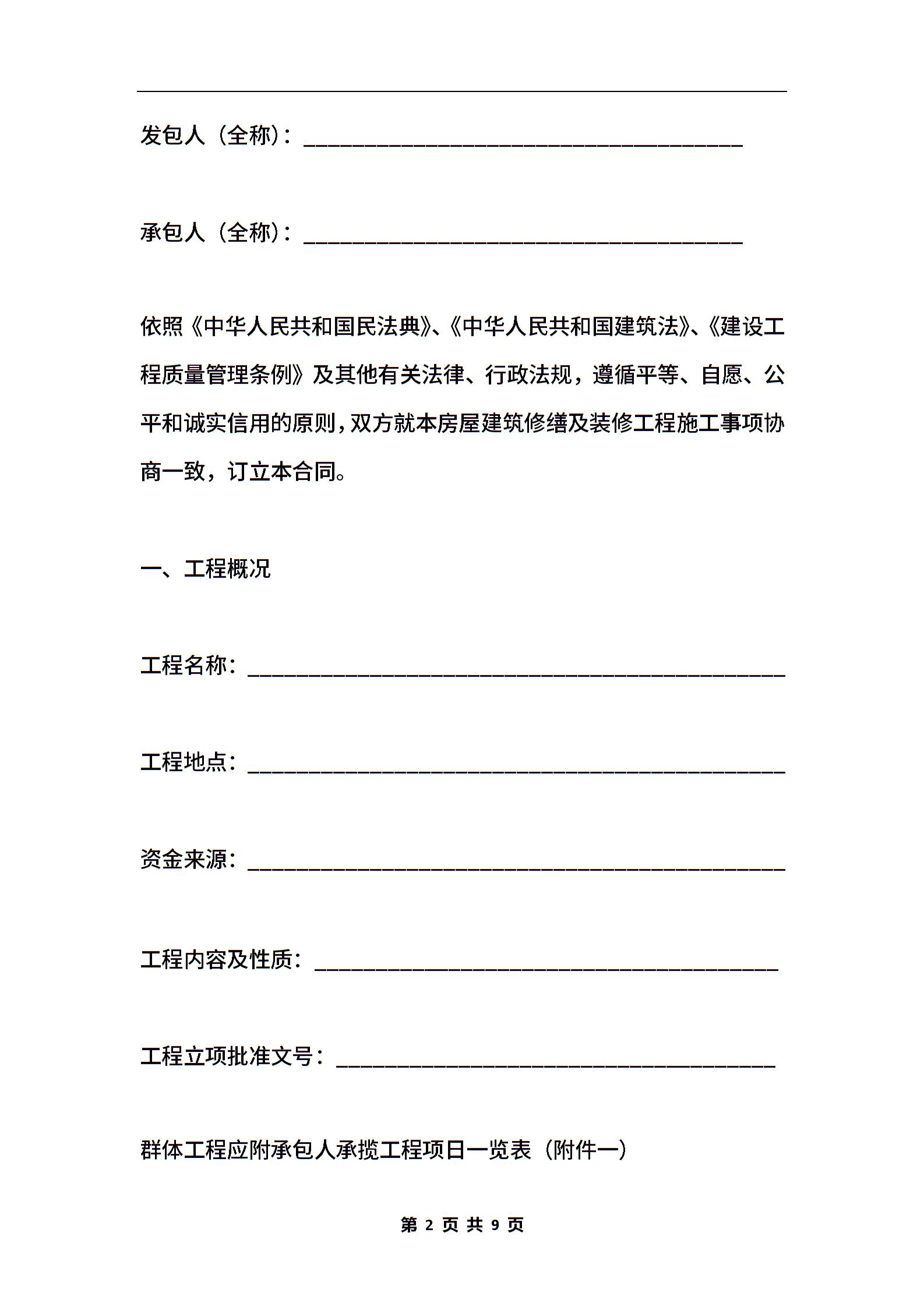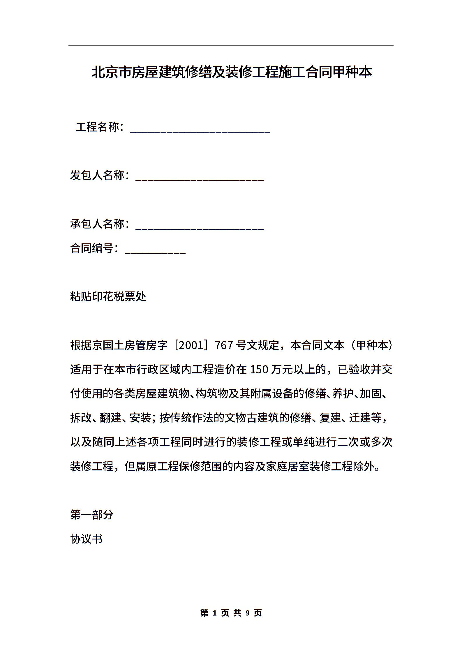 北京市房屋建筑修缮及装修工程施工合同甲种本