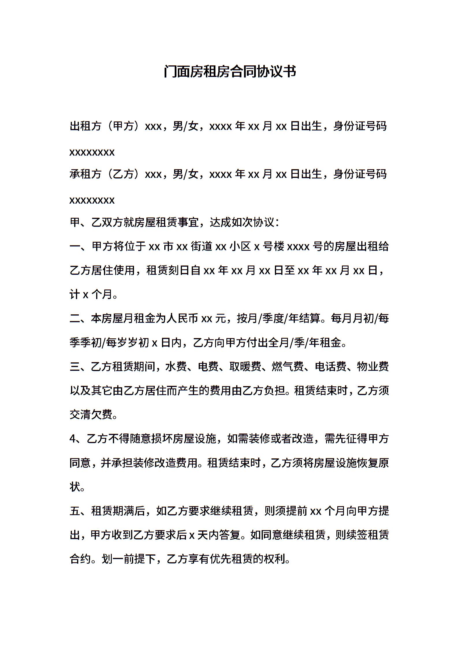门面房租房合同协议书