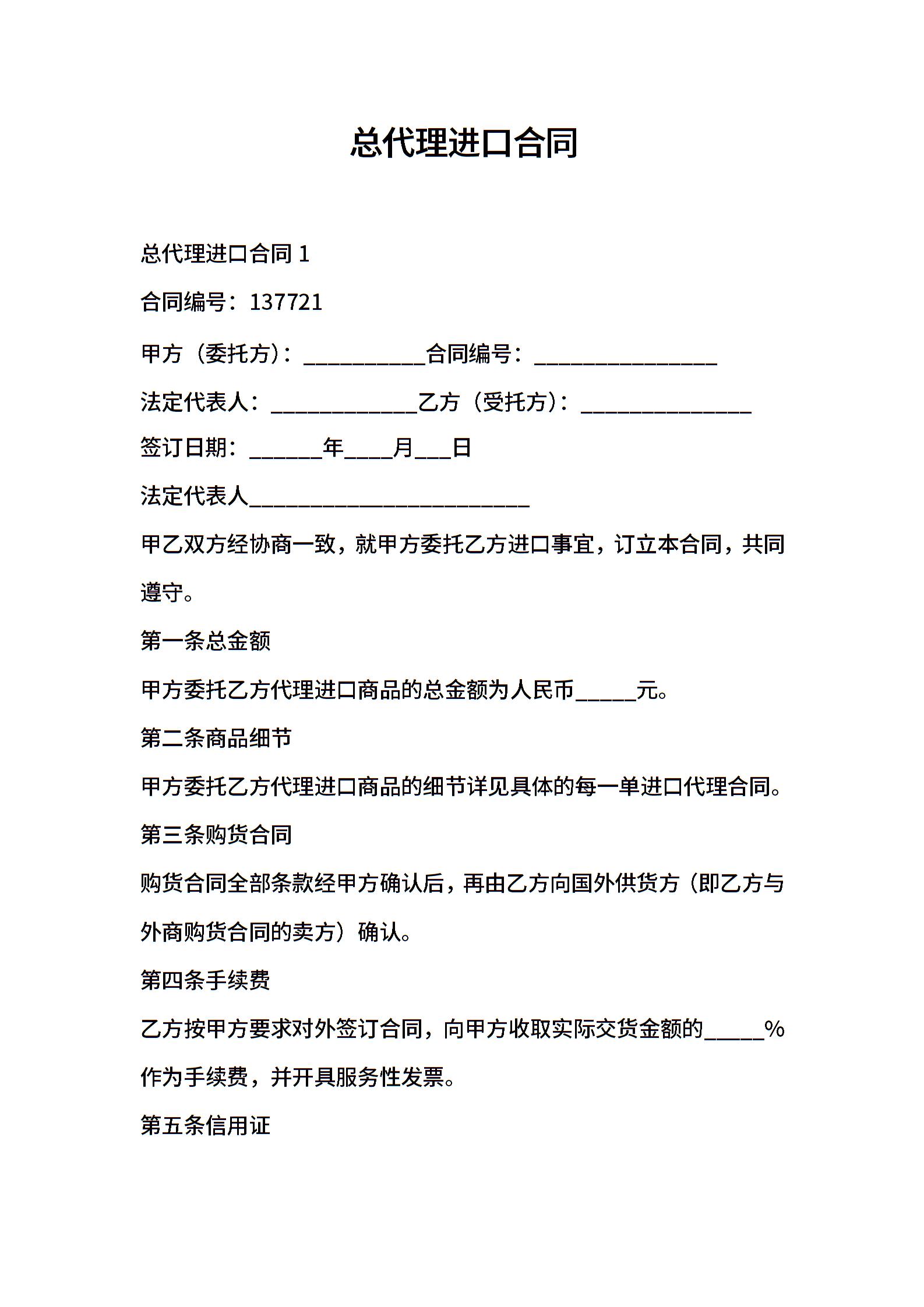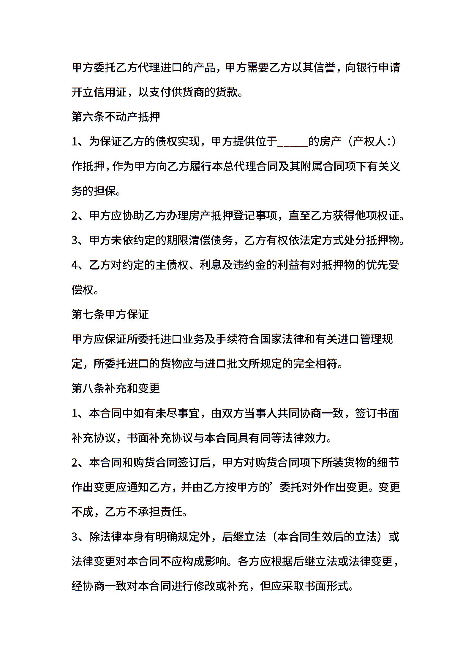 总代理进口合同