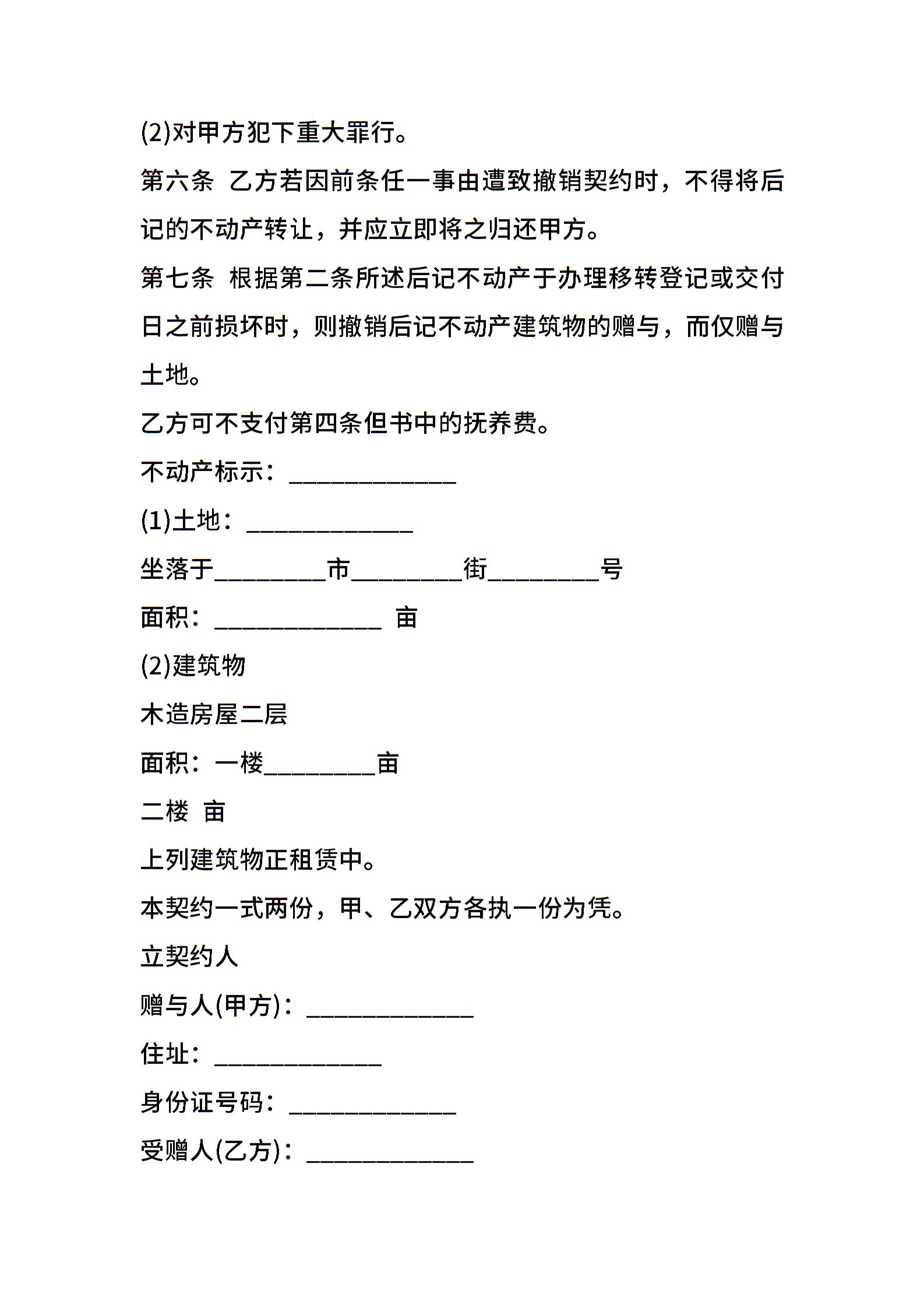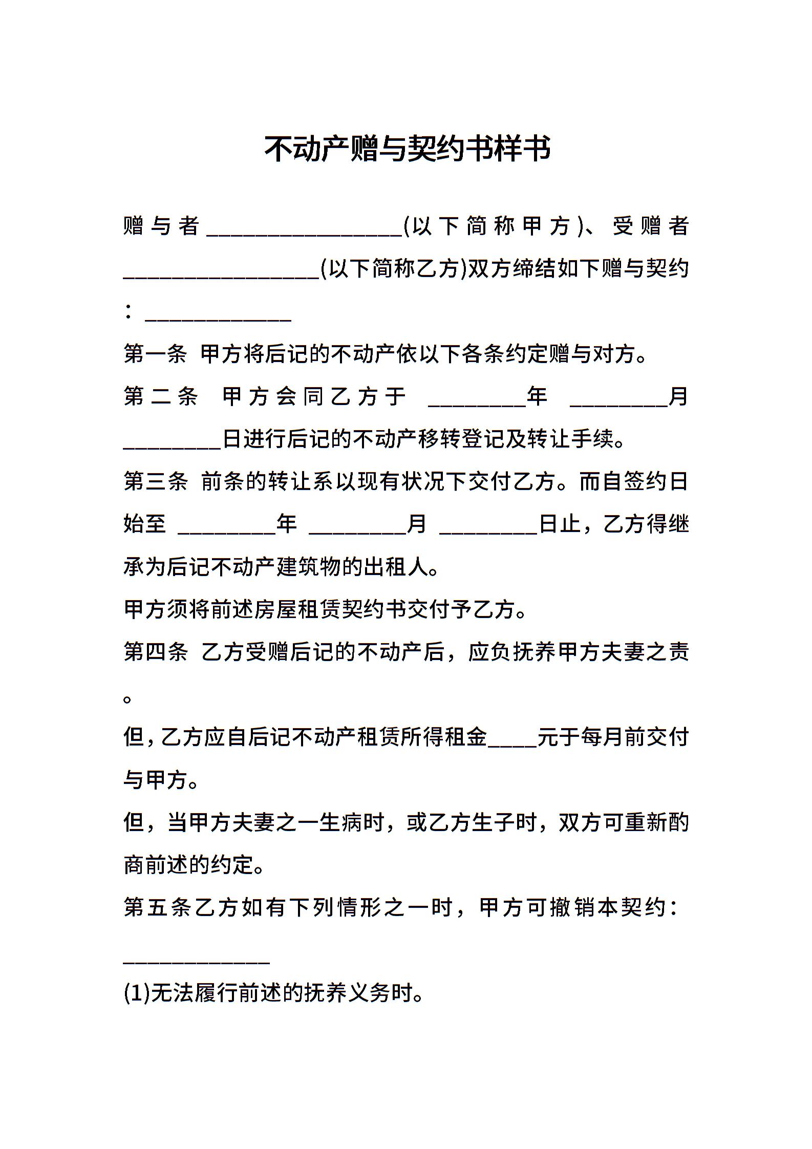 不动产赠与契约书样书