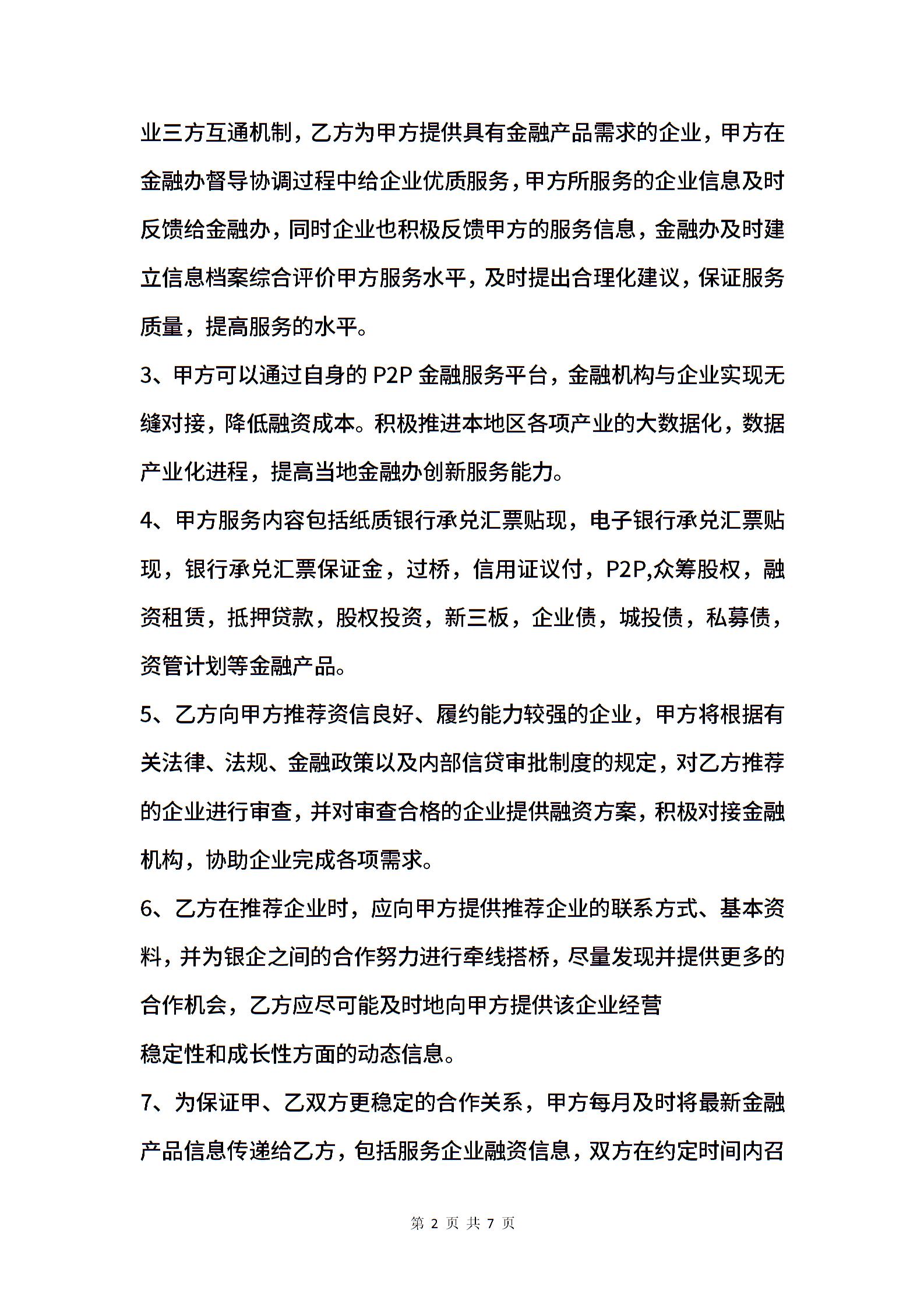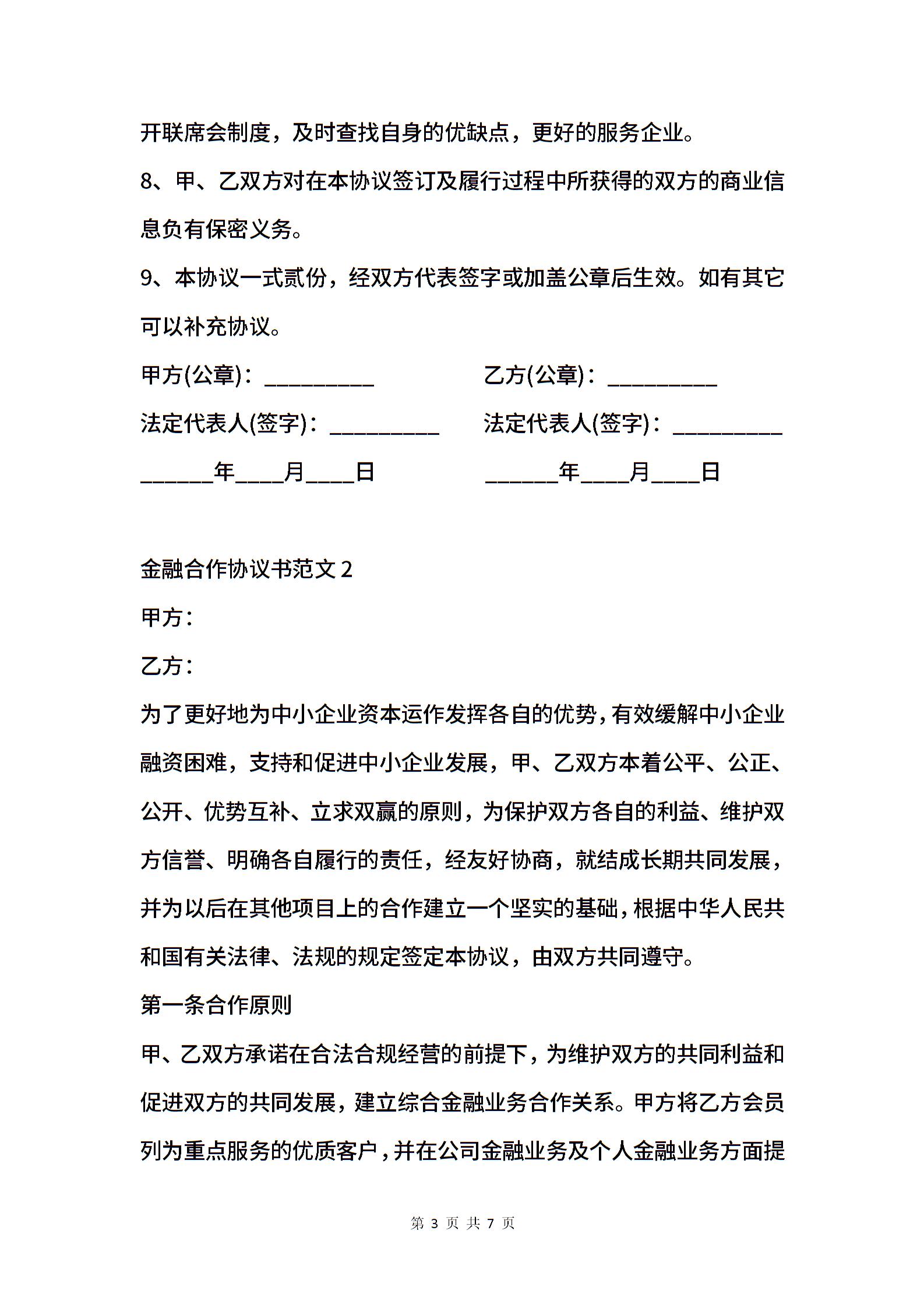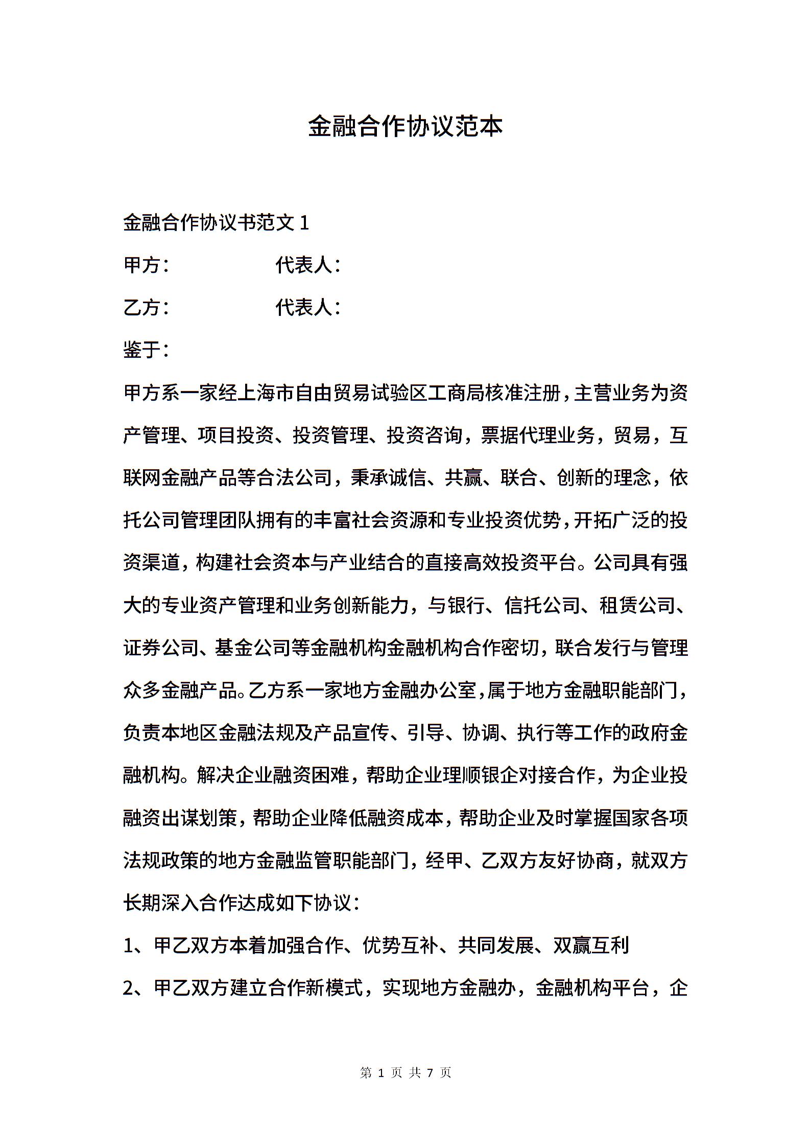 金融合作协议范本
