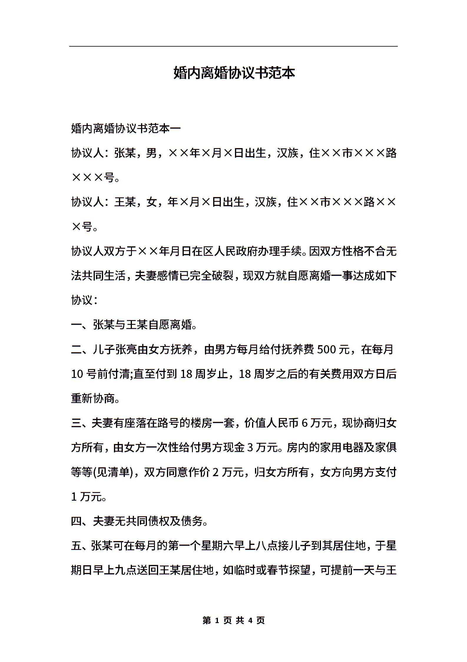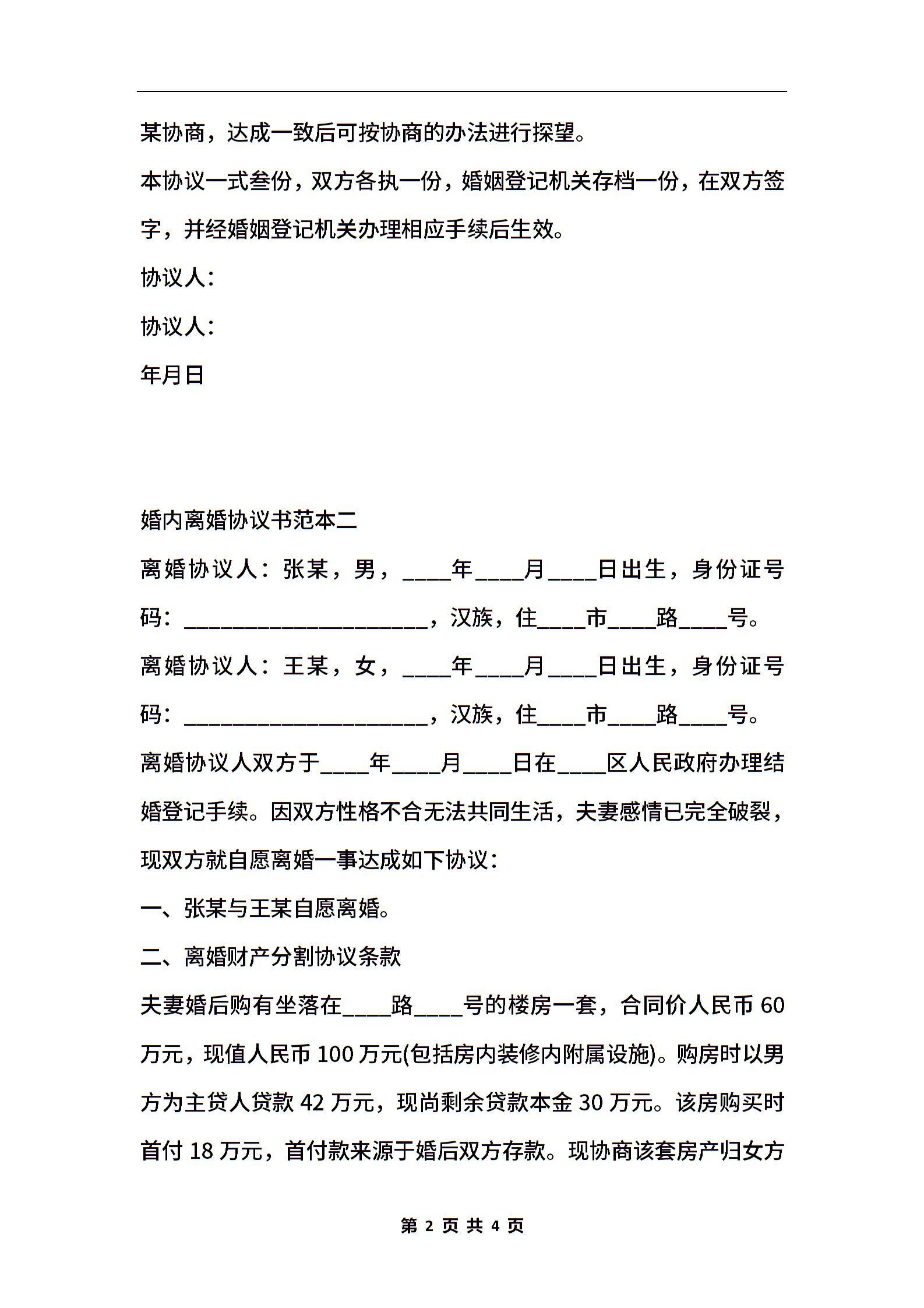 婚内离婚协议书范本