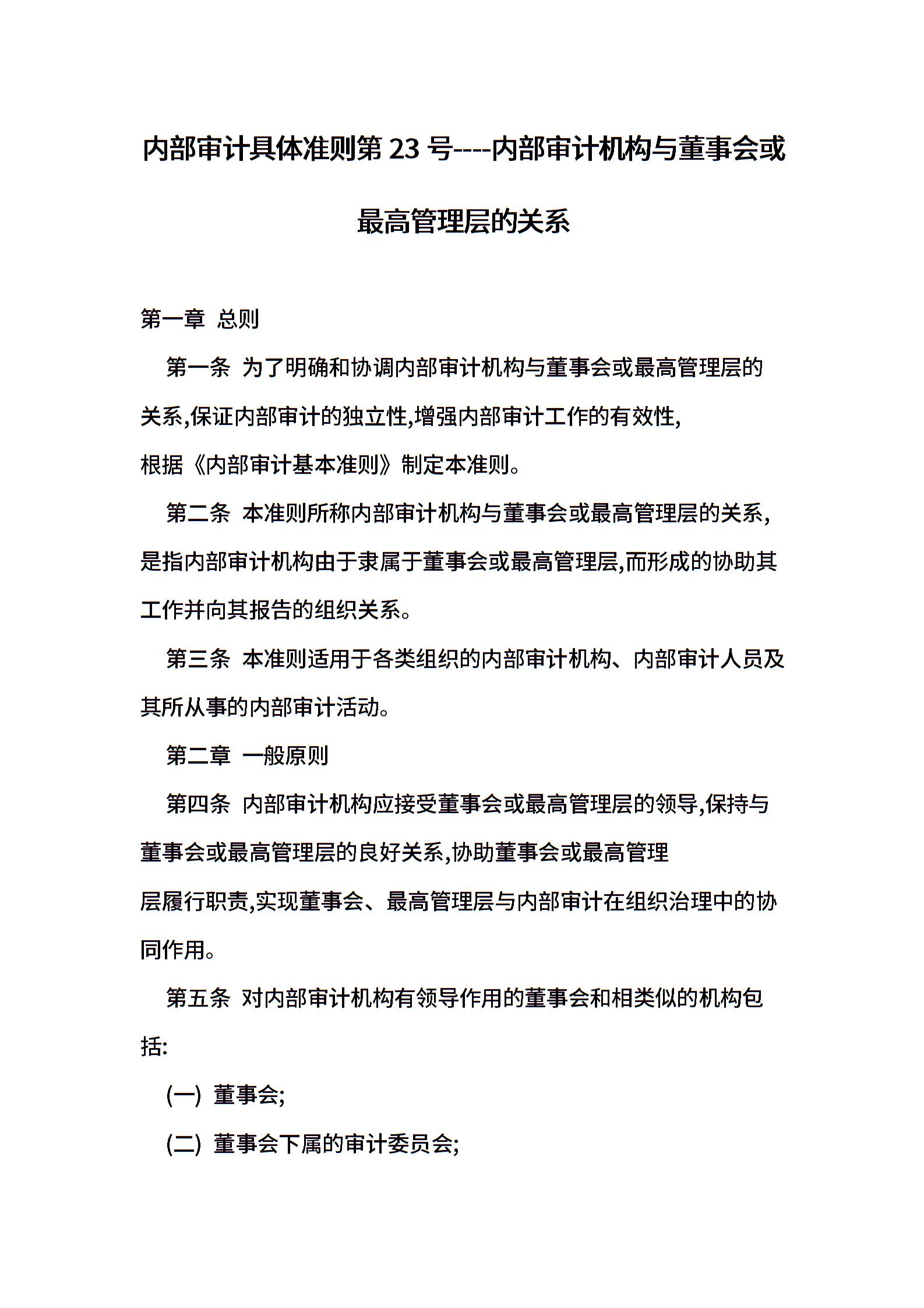 内部审计具体准则第23号----内部审计机构与董事会或最高管理层的关系