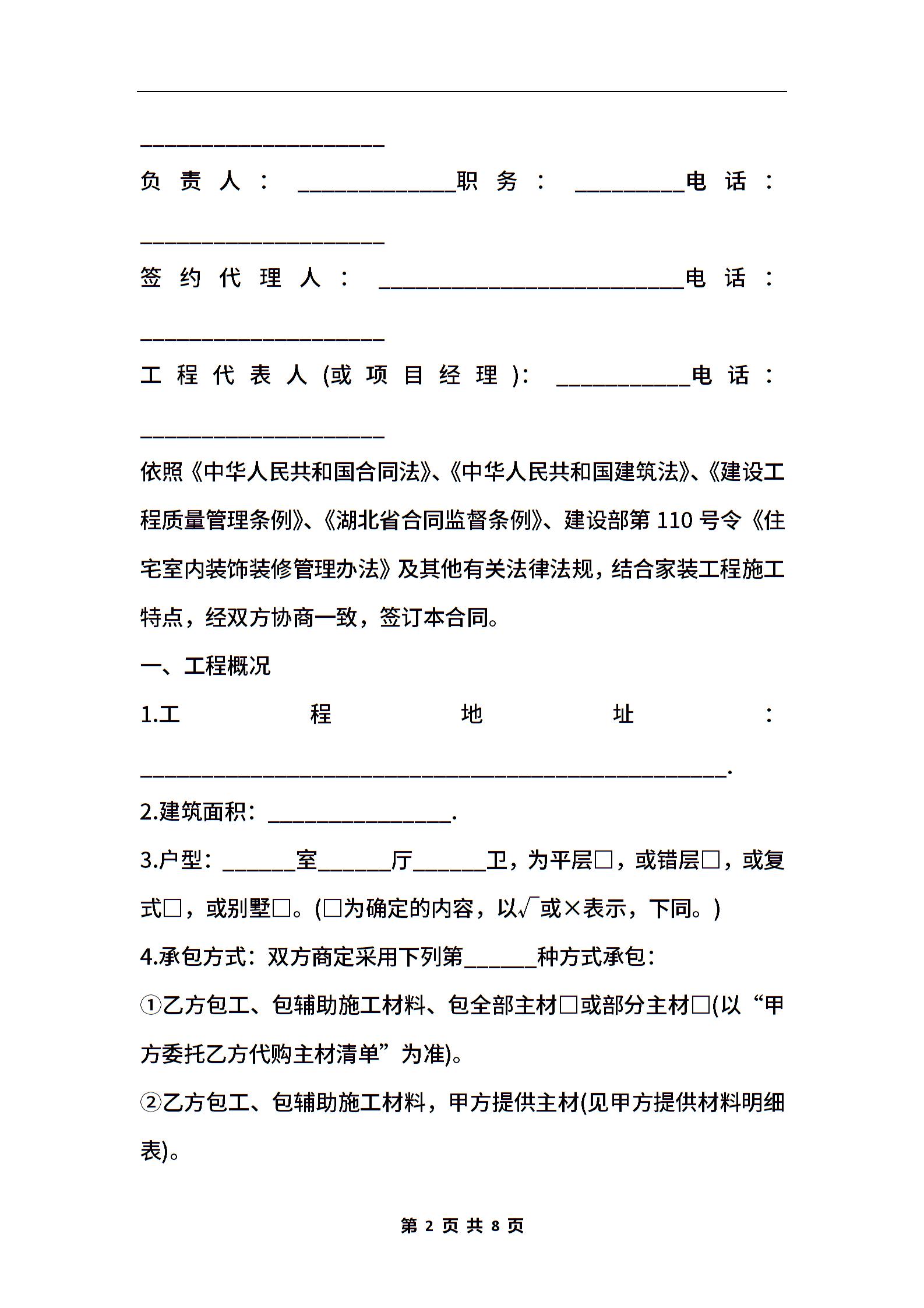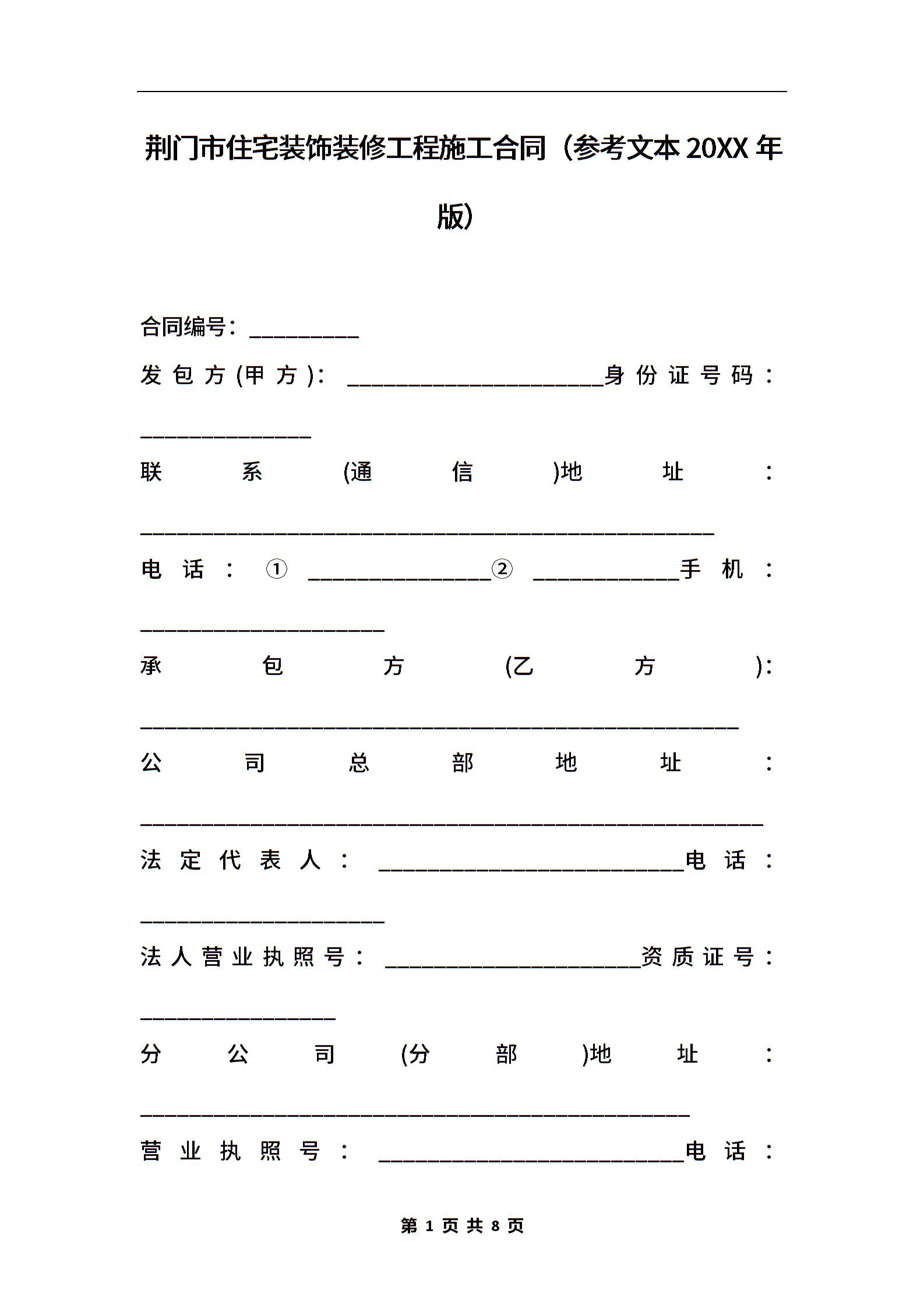 荆门市住宅装饰装修工程施工合同(参考文本2020年版)