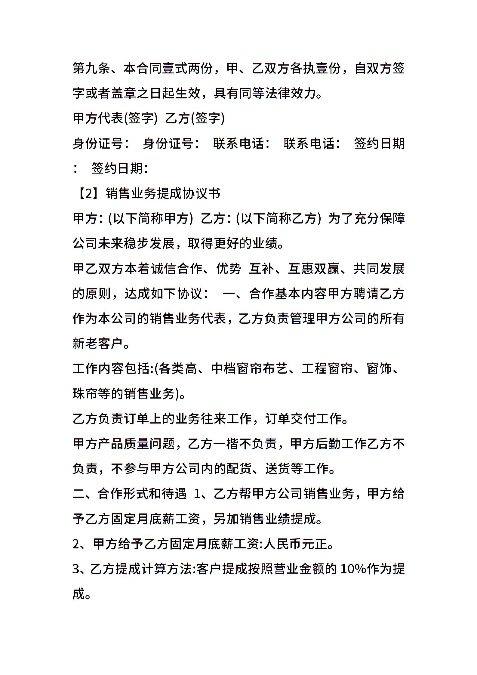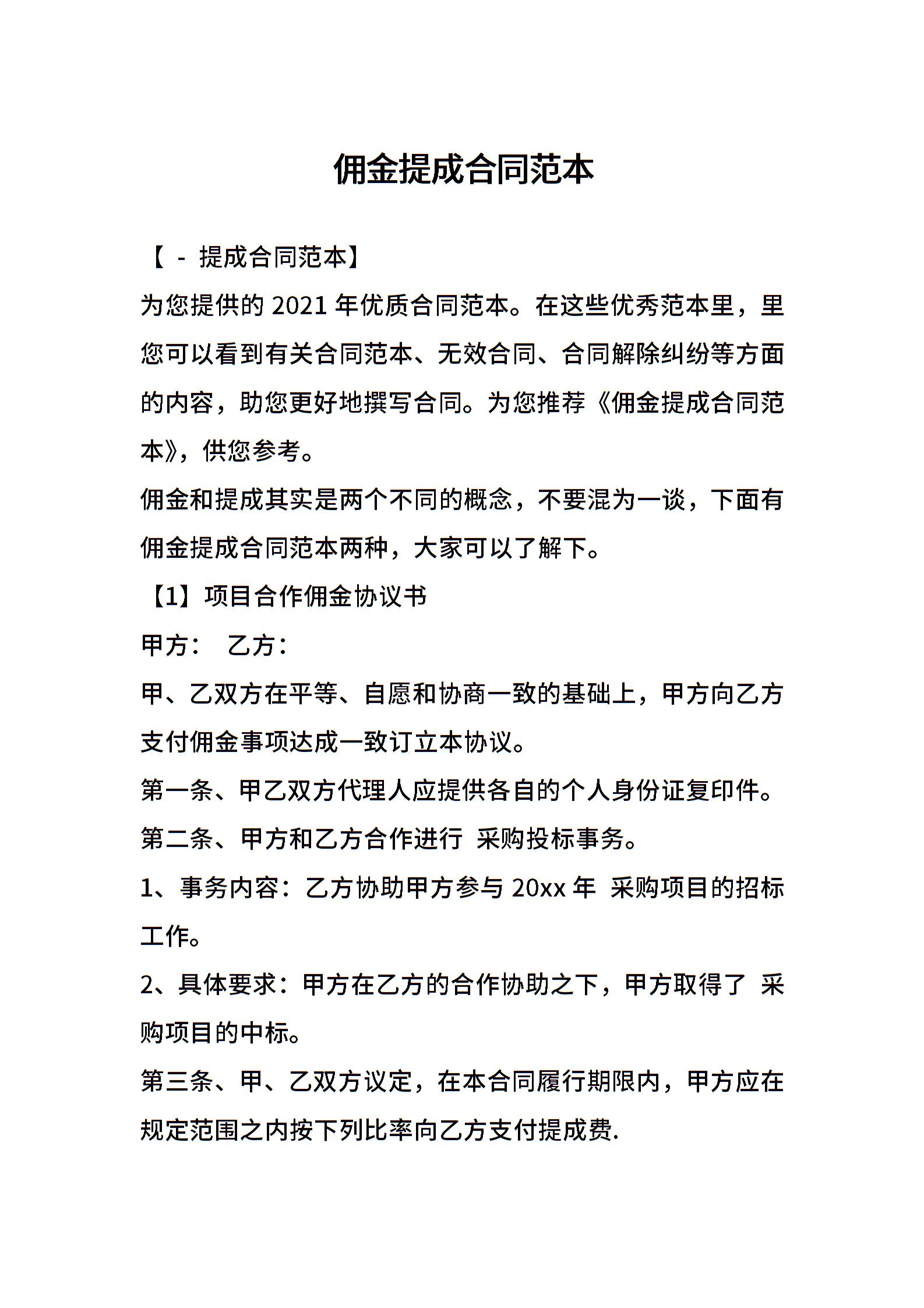 佣金提成合同范本