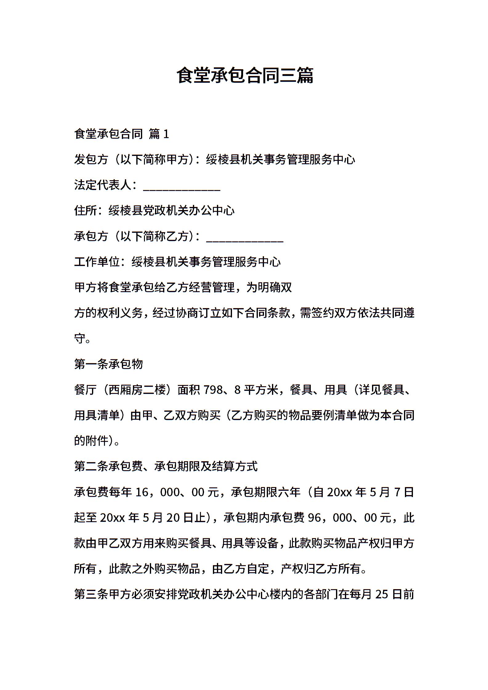 食堂承包合同三篇