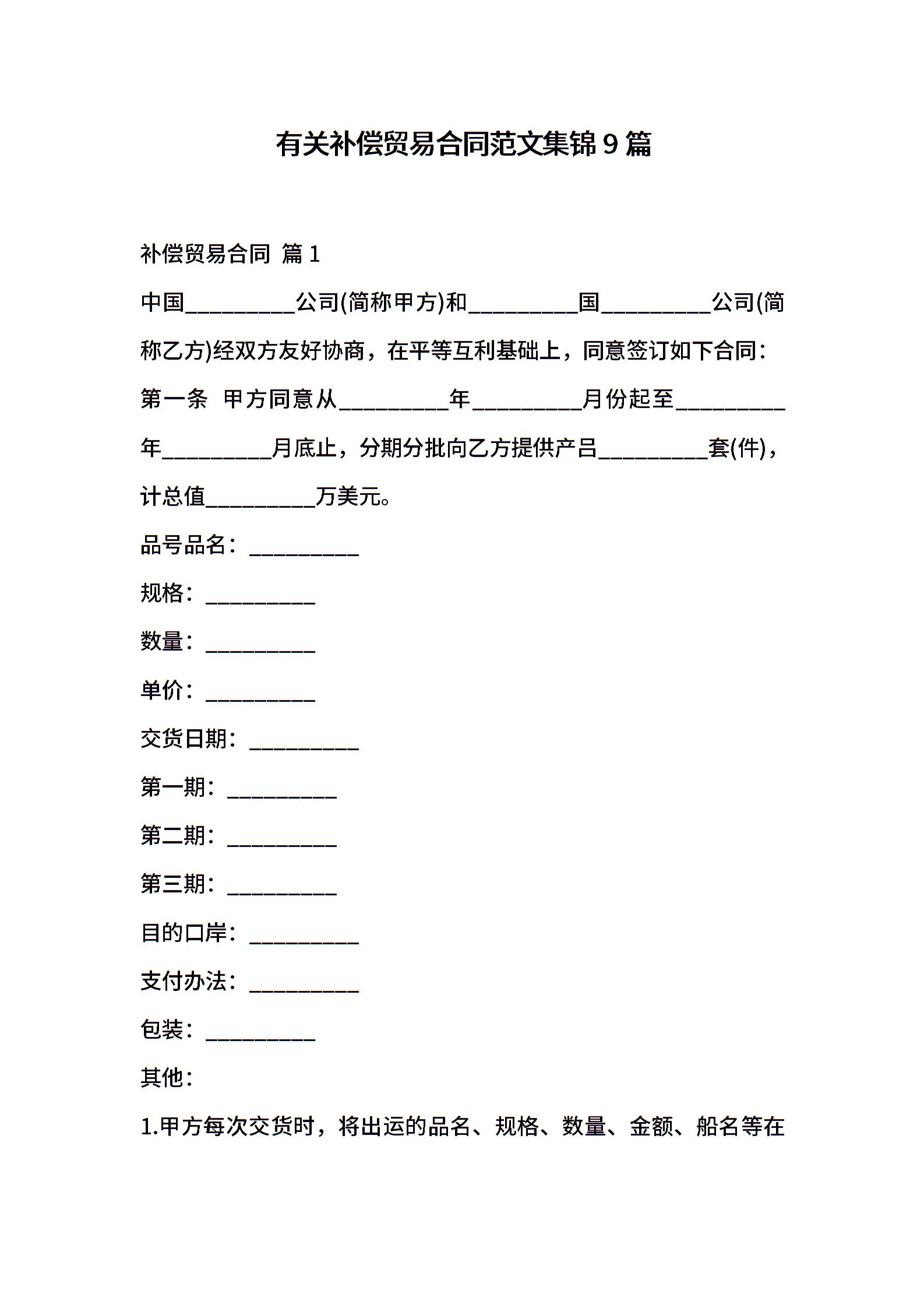 有关补偿贸易合同范文集锦9篇
