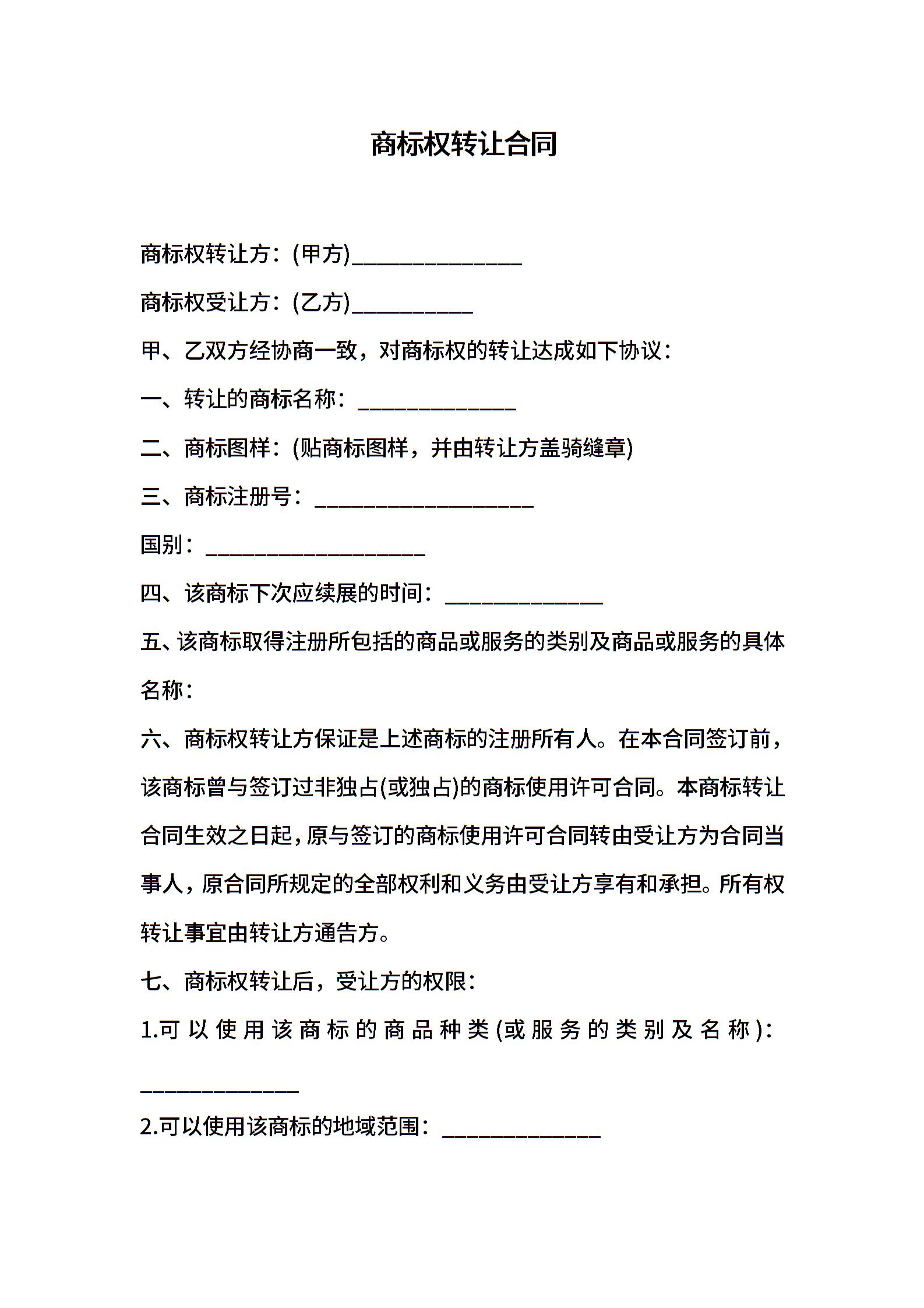 当前位置:量子办公 > 合同模板 > 转让合同 >
