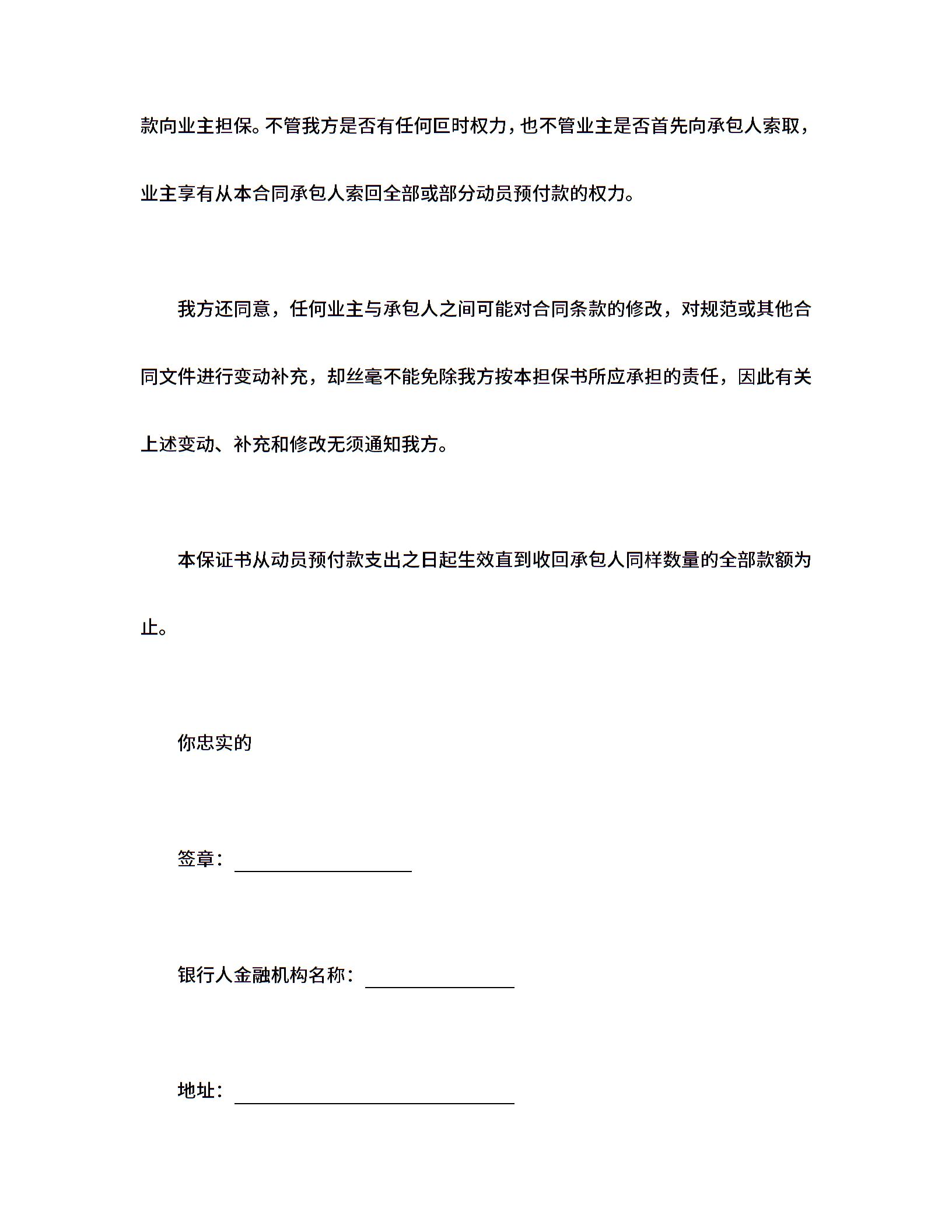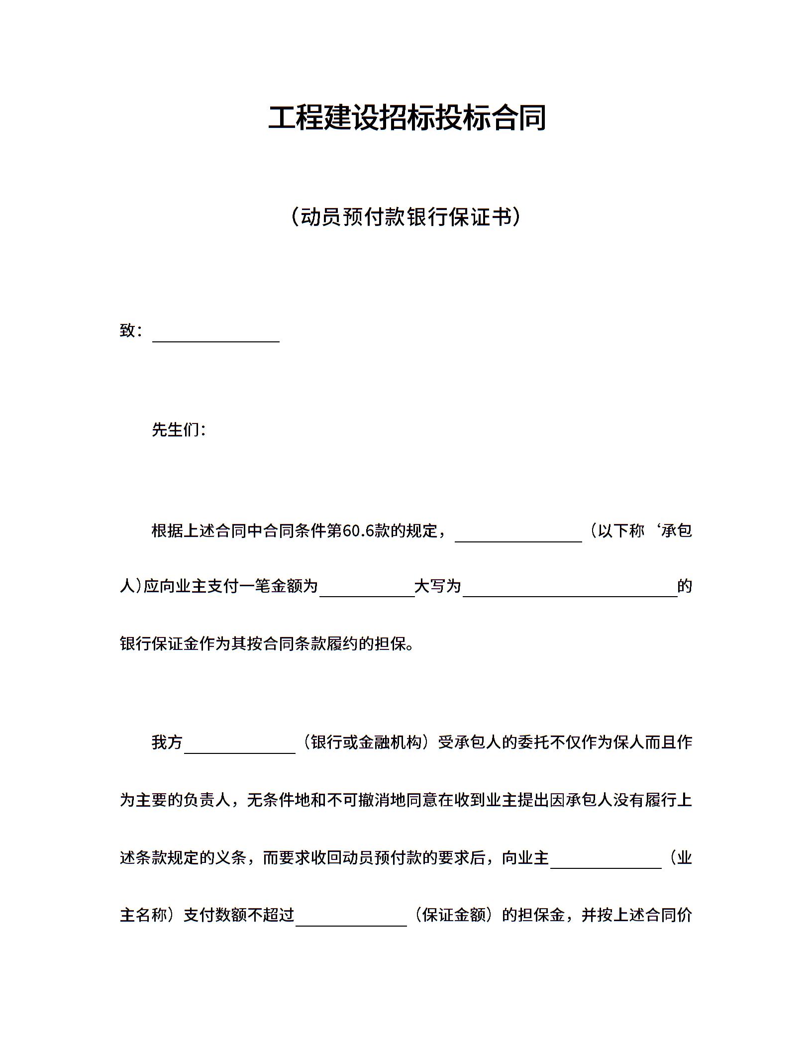 工程建设招标投标合同(动员预付款银行保证书)