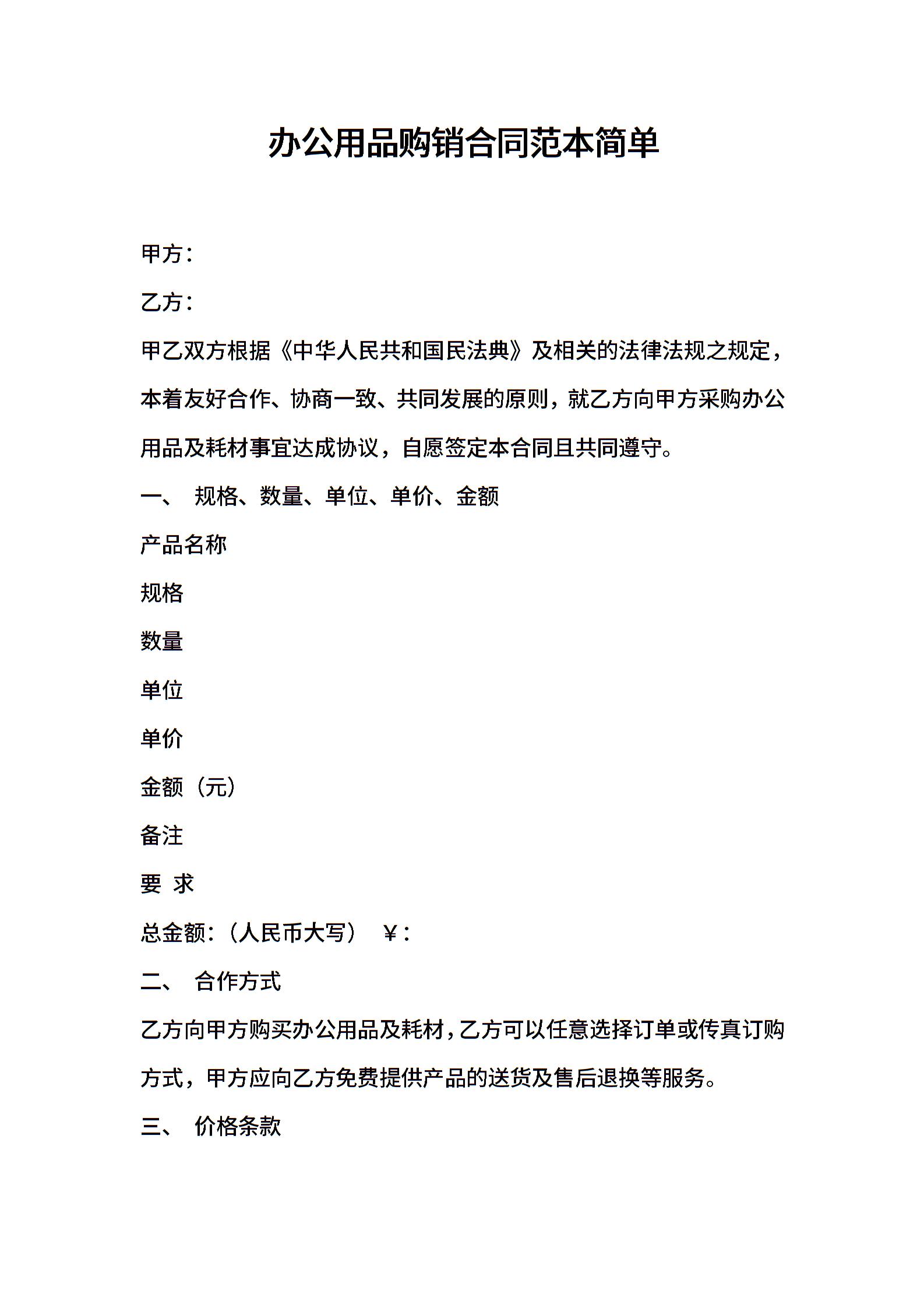 2021年办公用品购销合同范本简单