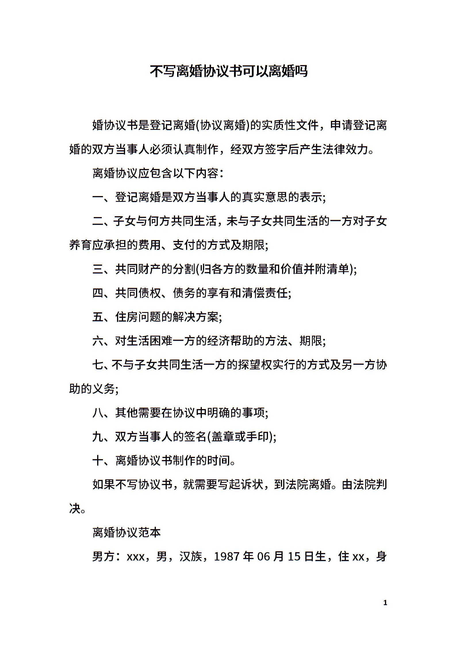 不写离婚协议书可以离婚吗