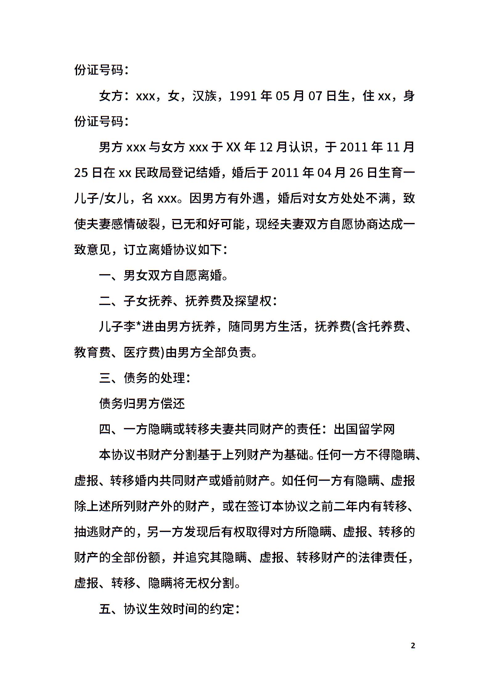 当前位置:量子办公 > 合同模板 > 离婚协议 >
