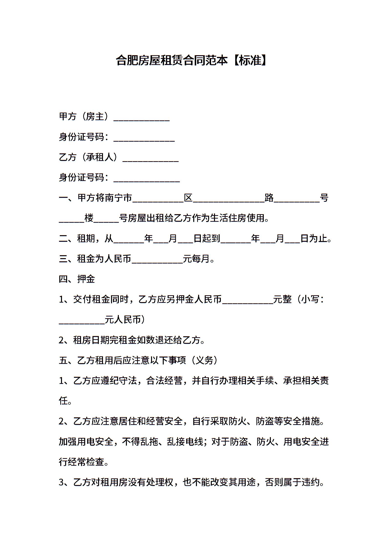 合肥房屋租赁合同范本【标准】