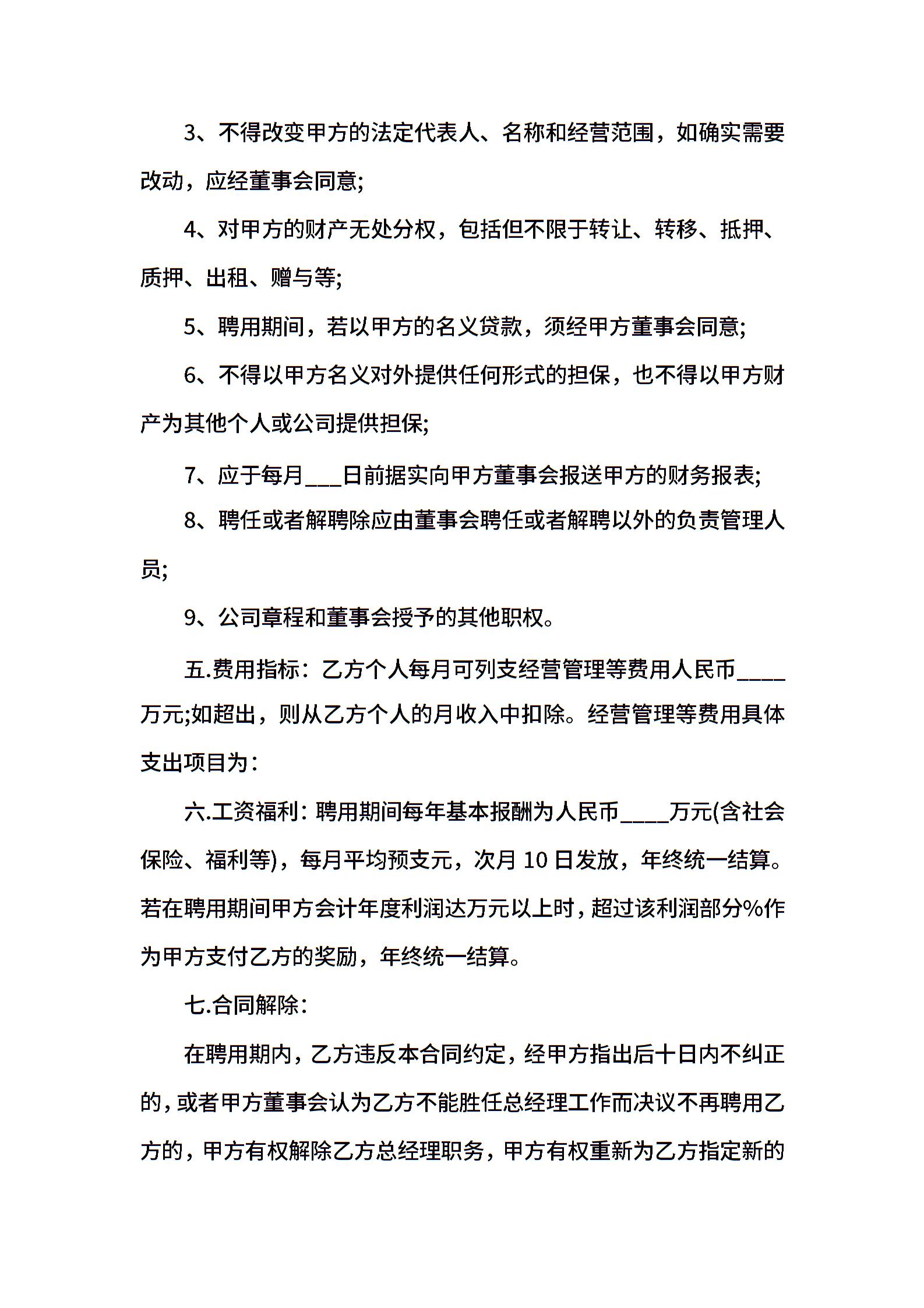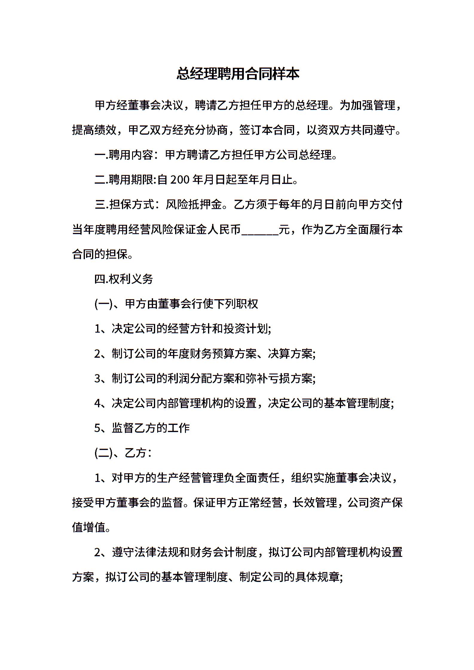 总经理聘用合同样本