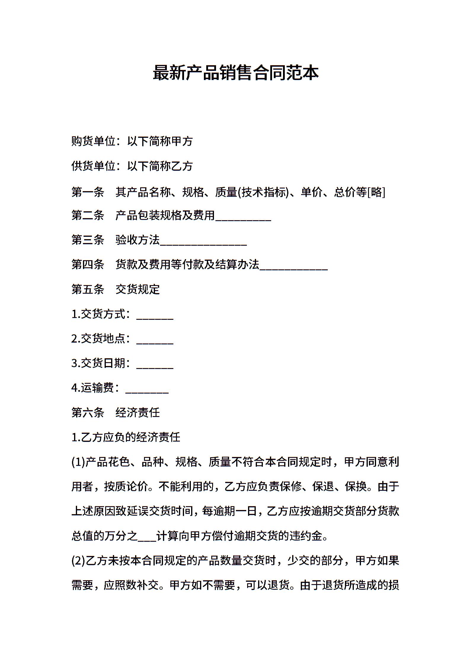 最新产品销售合同范本