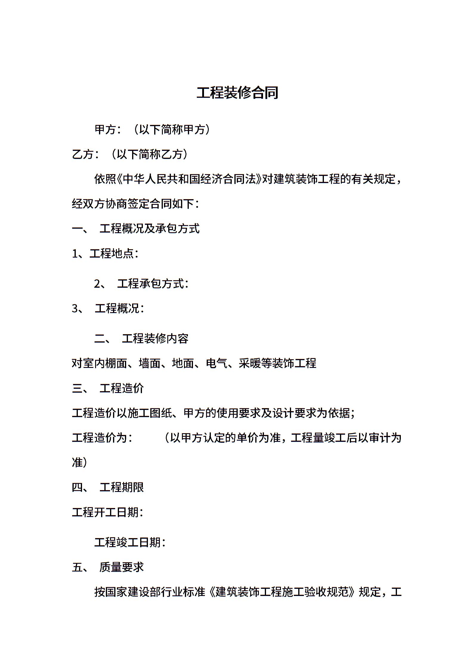 工程装修合同范文