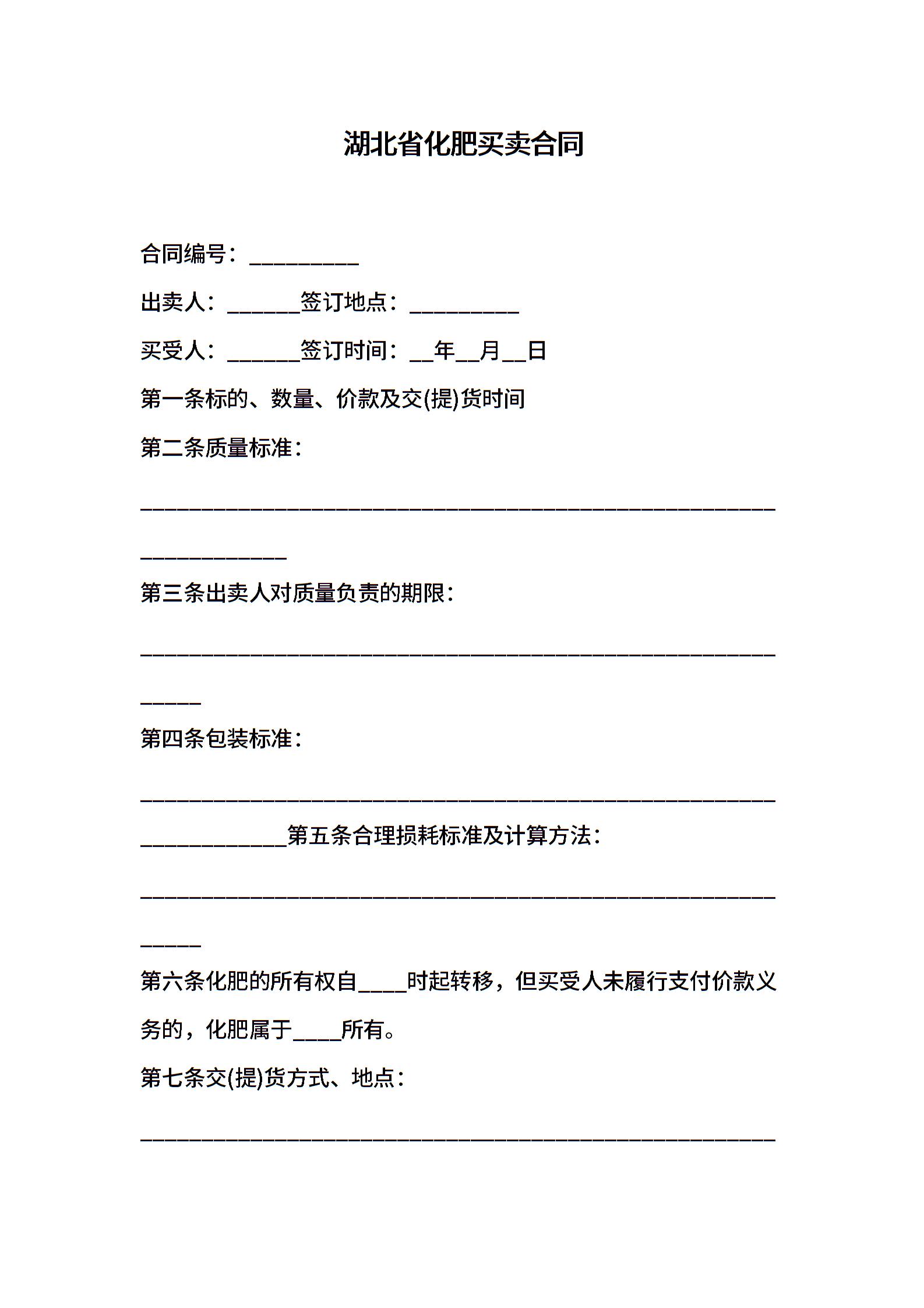 湖北省化肥买卖合同