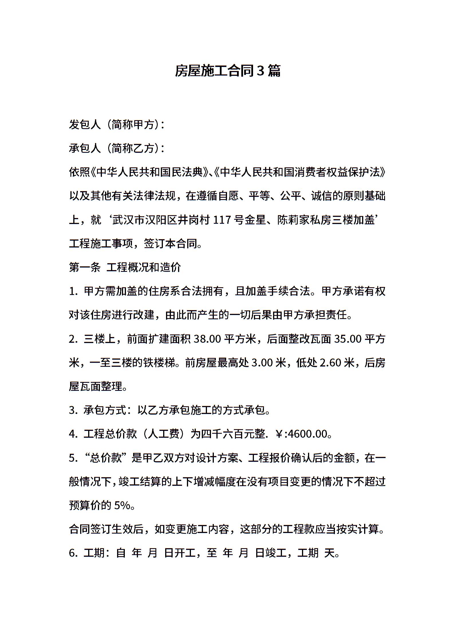 房屋施工合同3篇