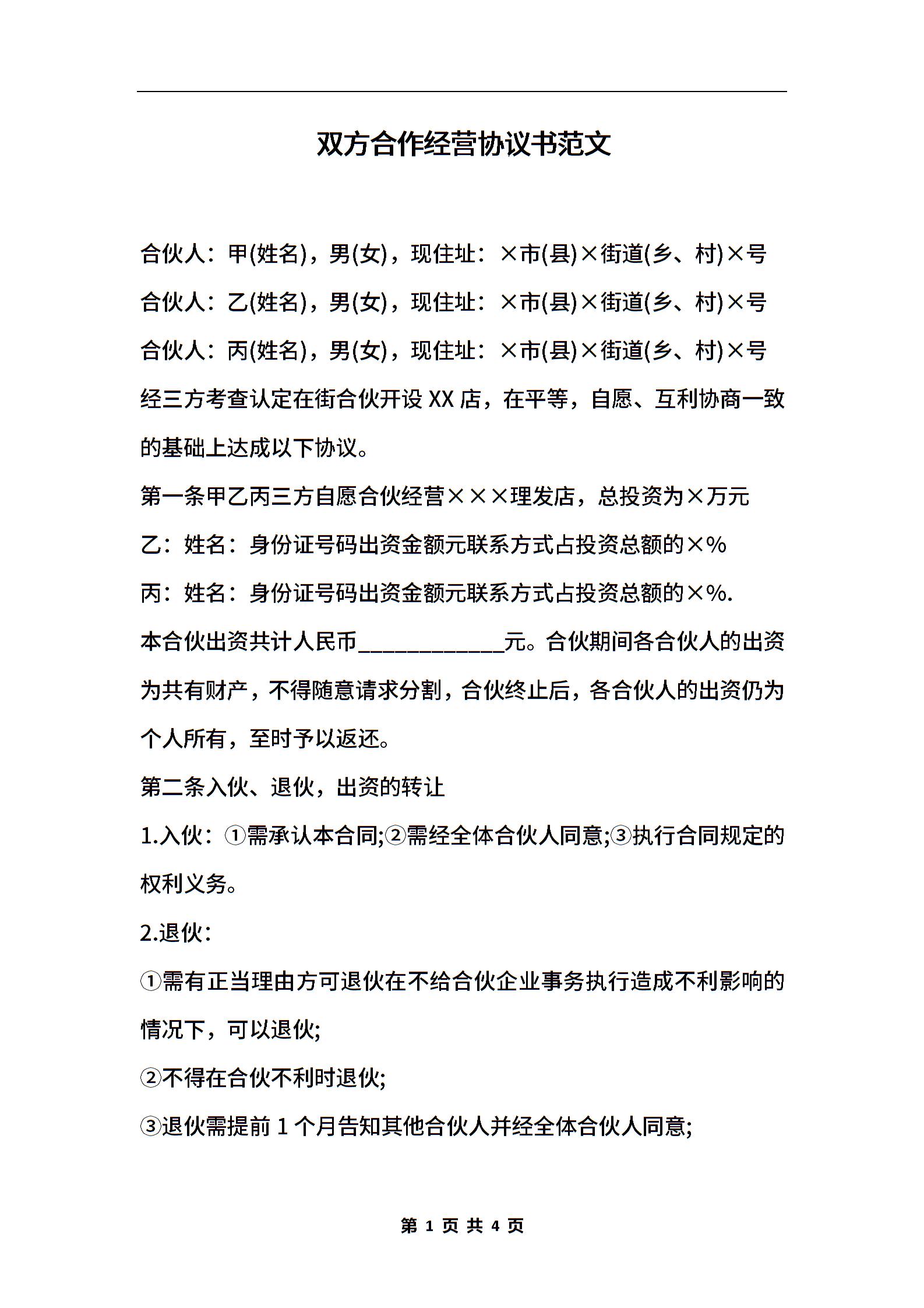 当前位置:量子办公 > 合同模板 > 合作合同 >