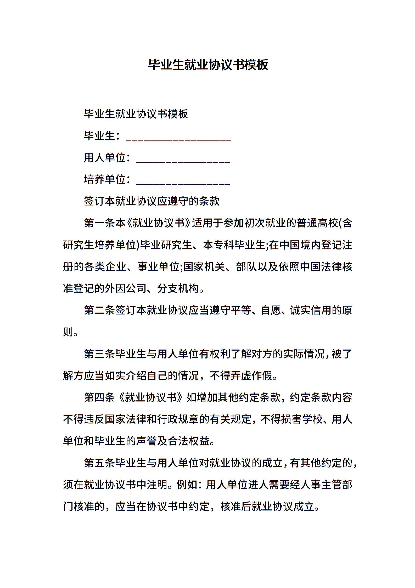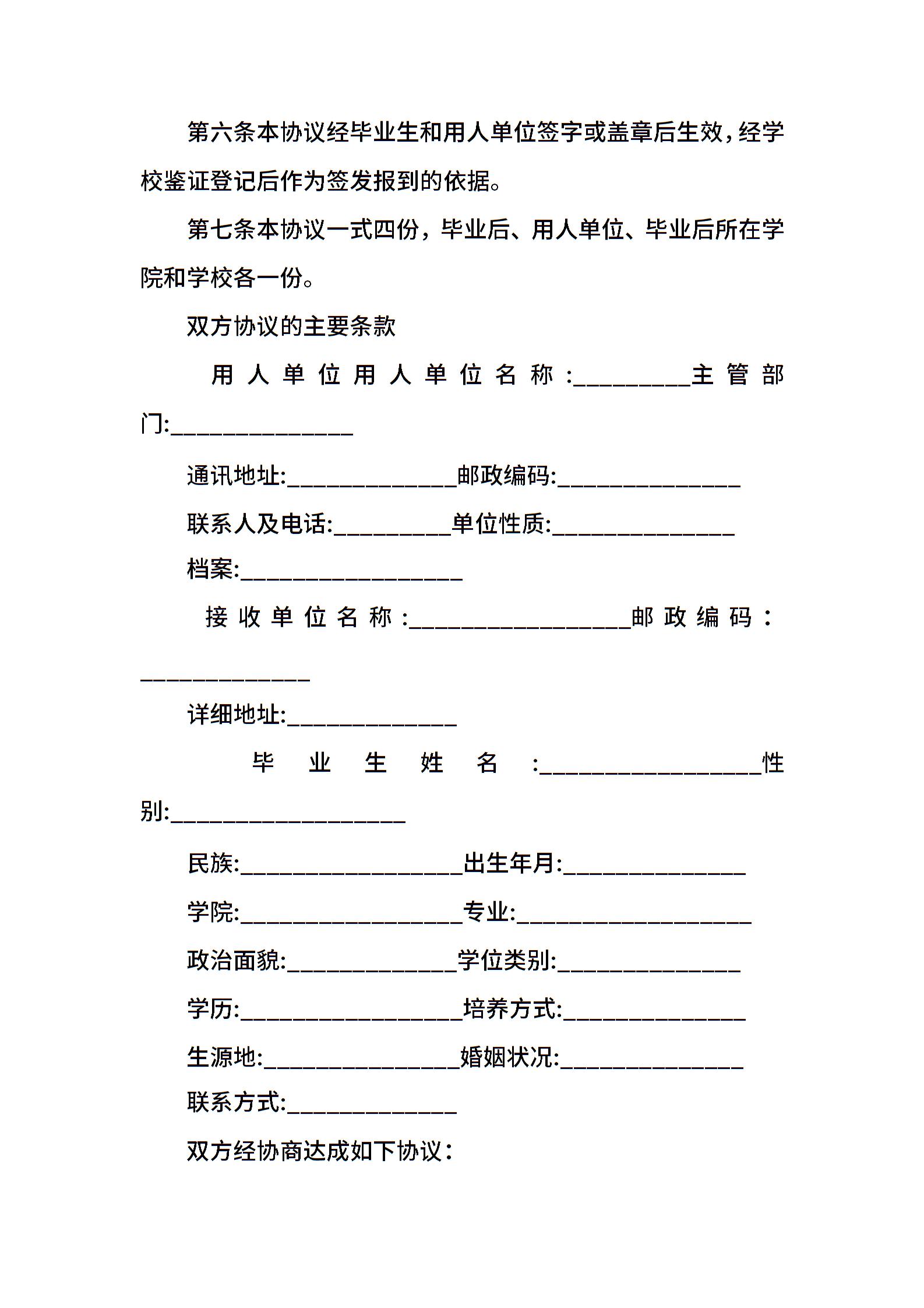 毕业生就业协议书模板