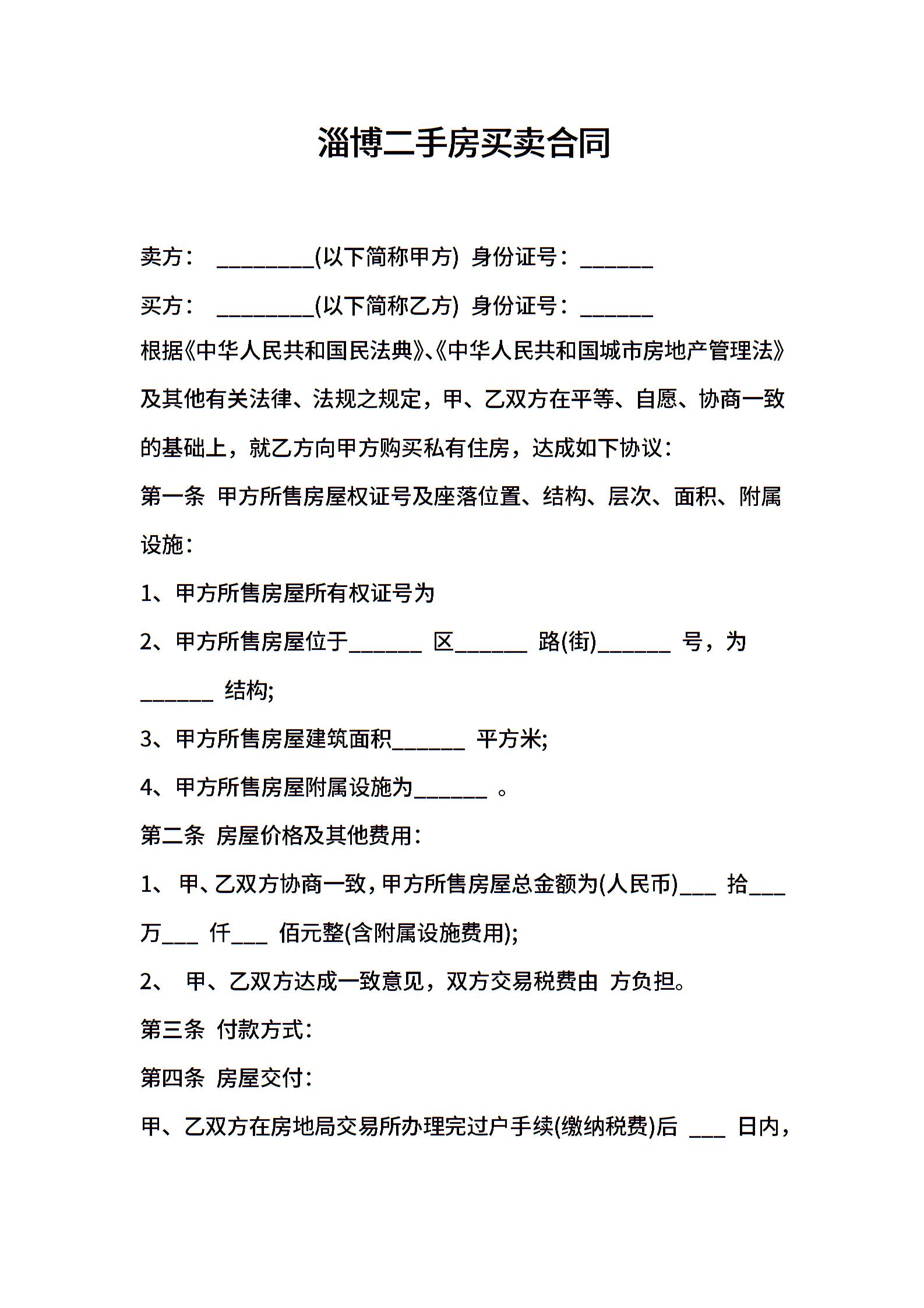 淄博二手房买卖合同