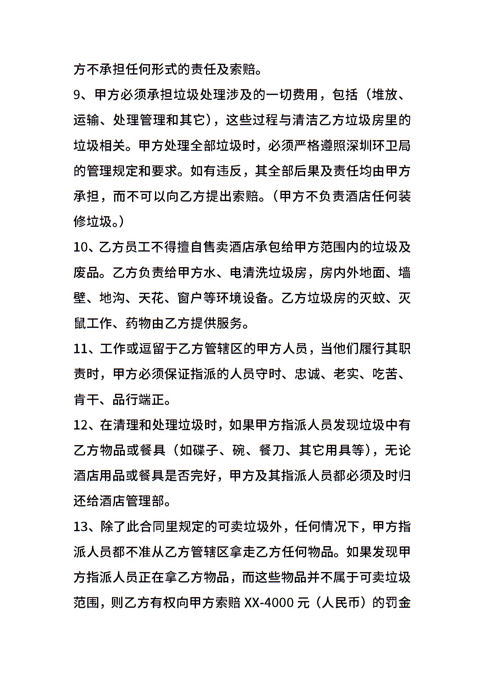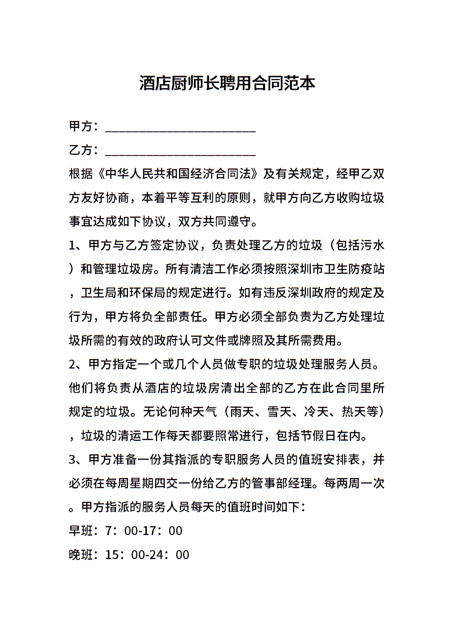 酒店厨师长聘用合同范本