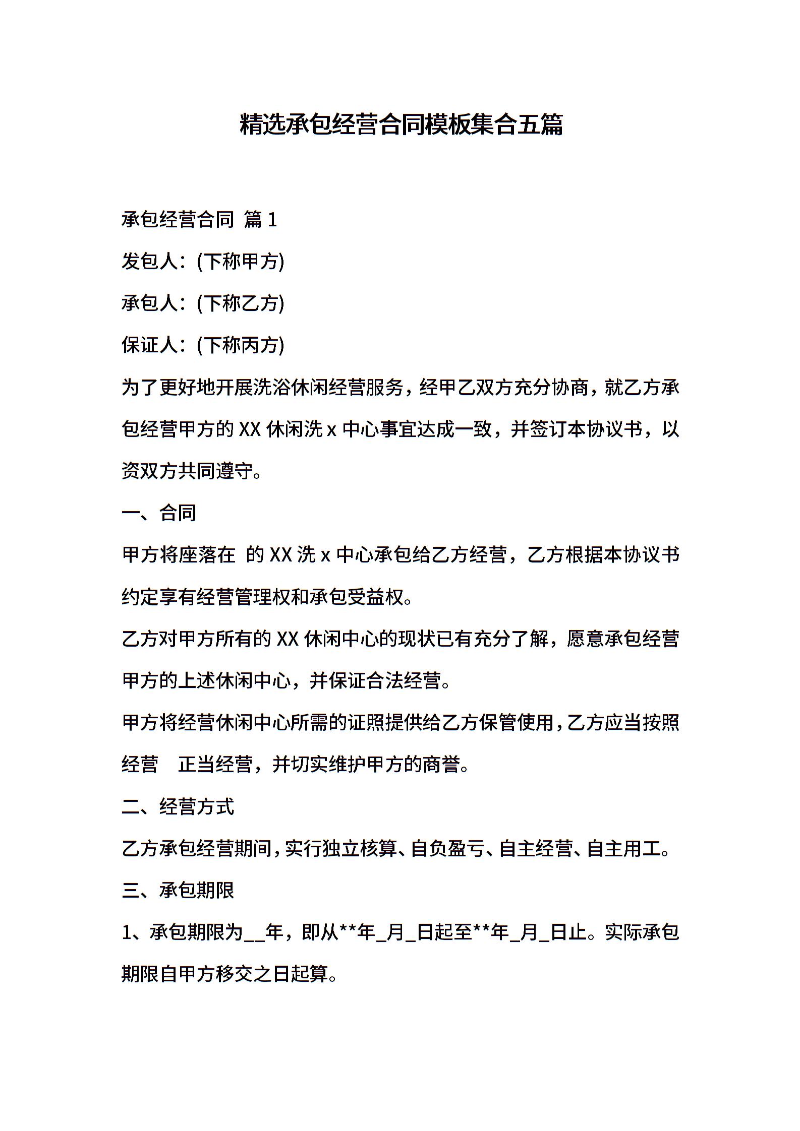 精选承包经营合同模板集合五篇