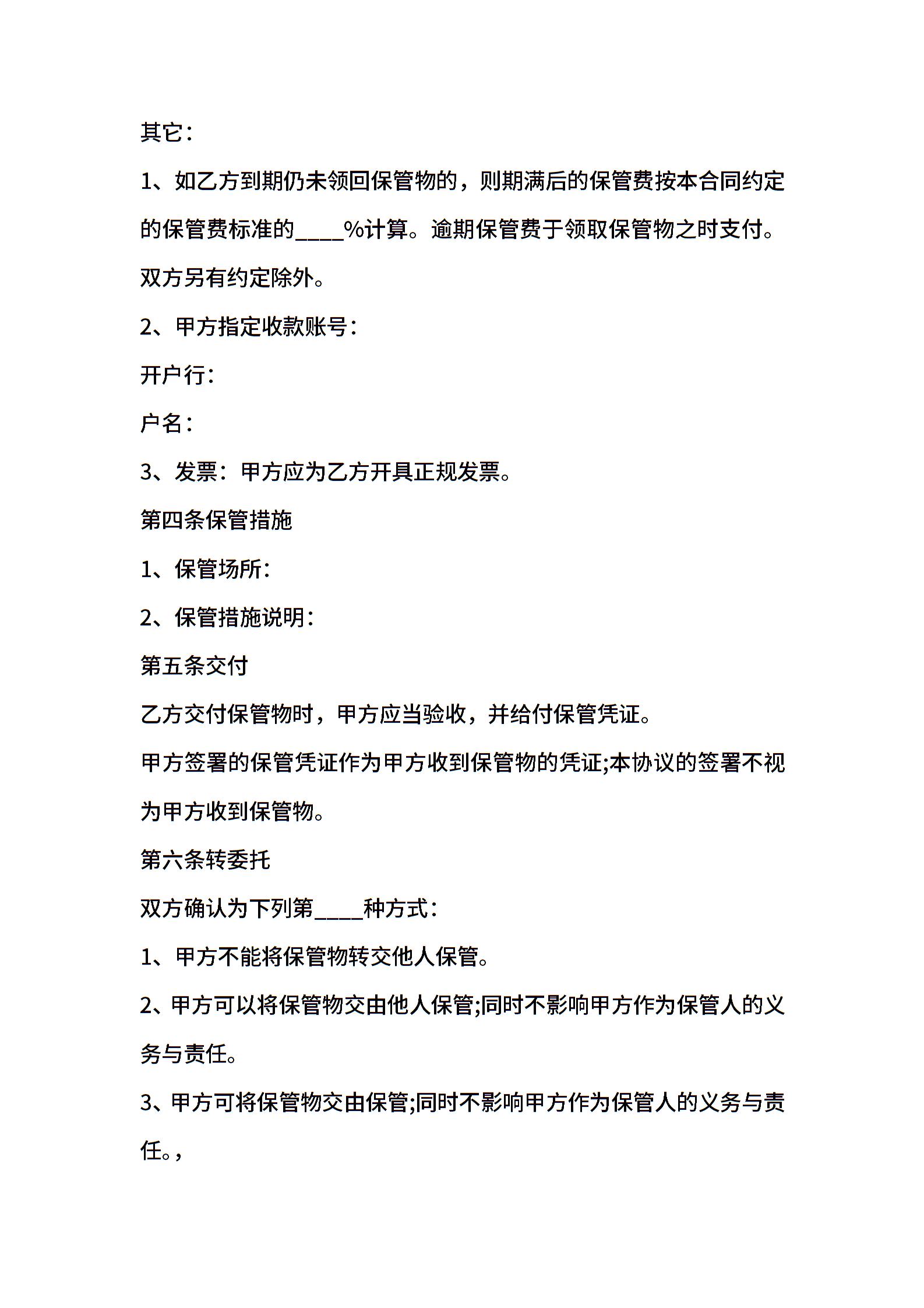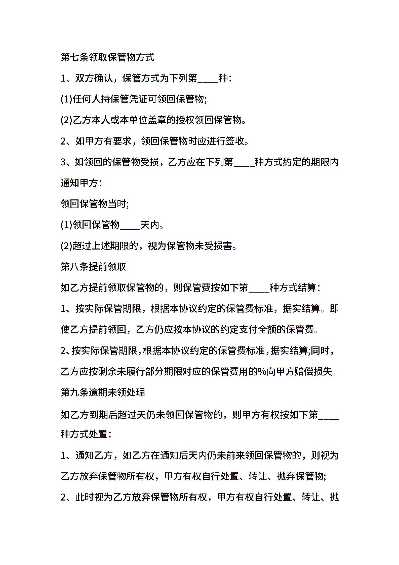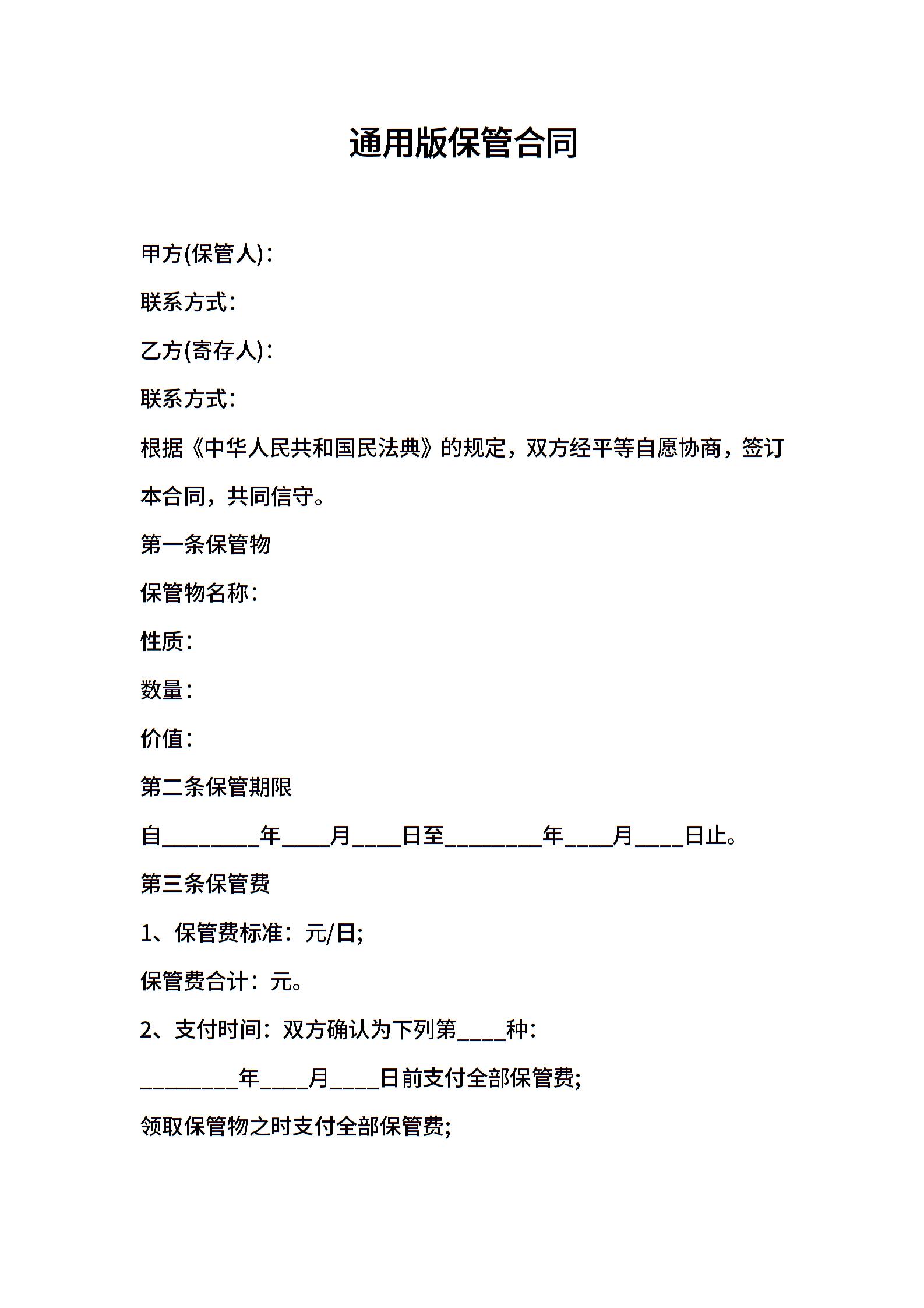 通用版保管合同