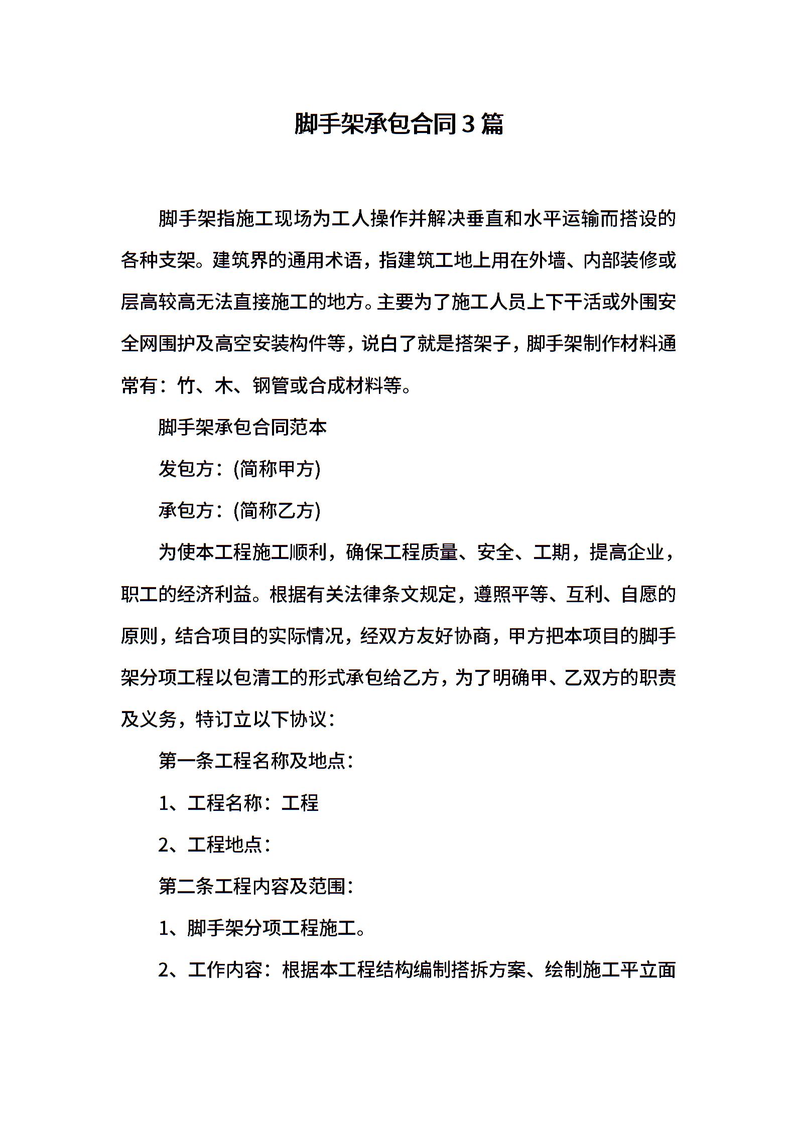 脚手架承包合同3篇