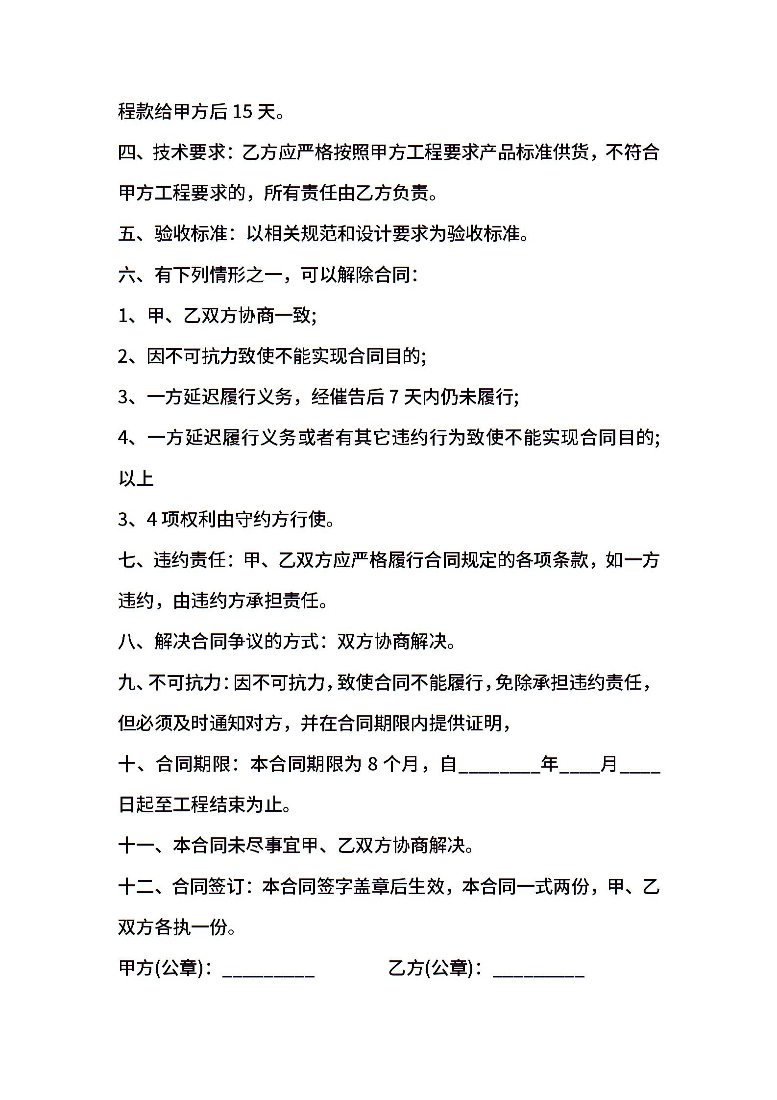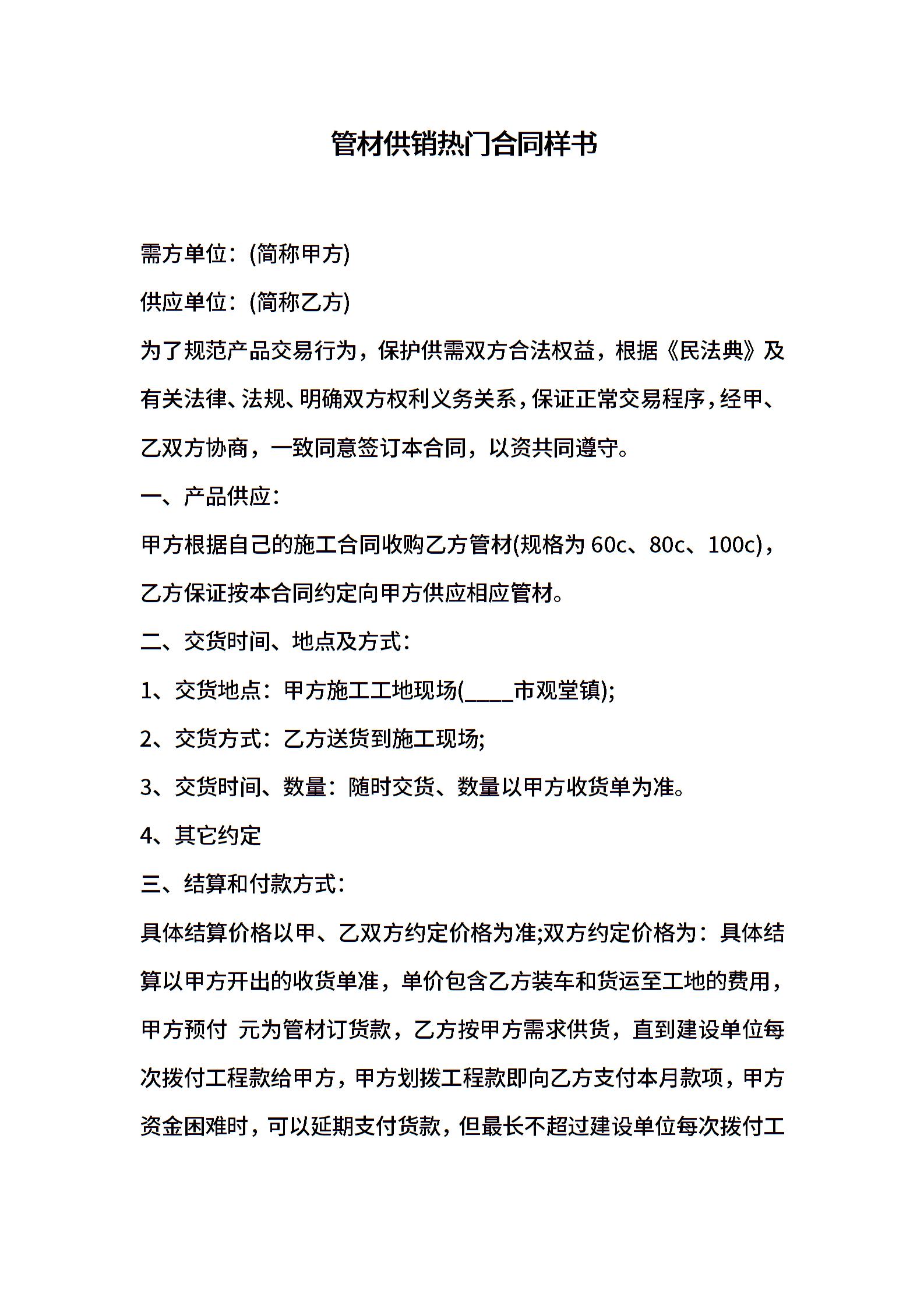 管材供销热门合同样书
