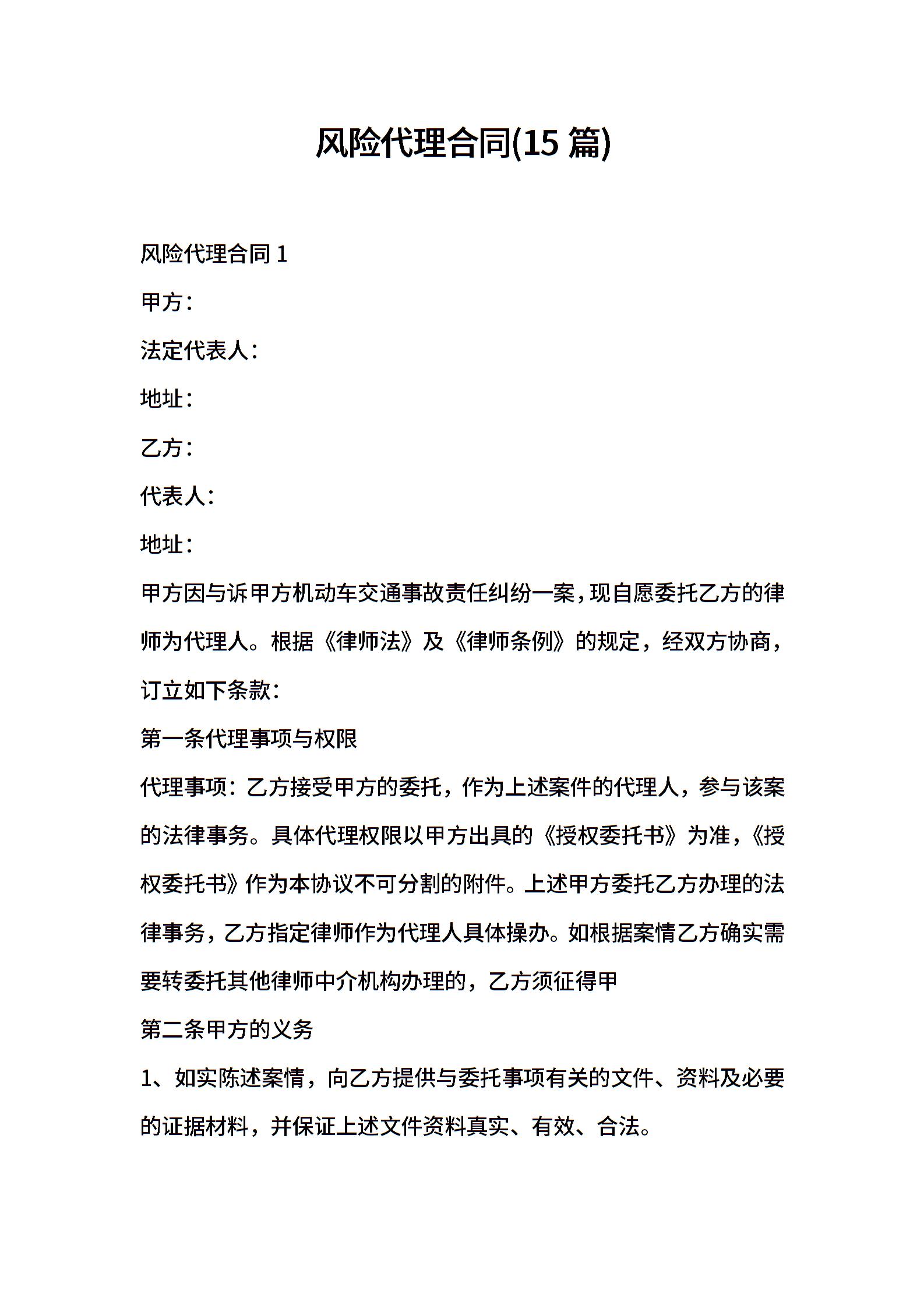 风险代理合同(15篇)