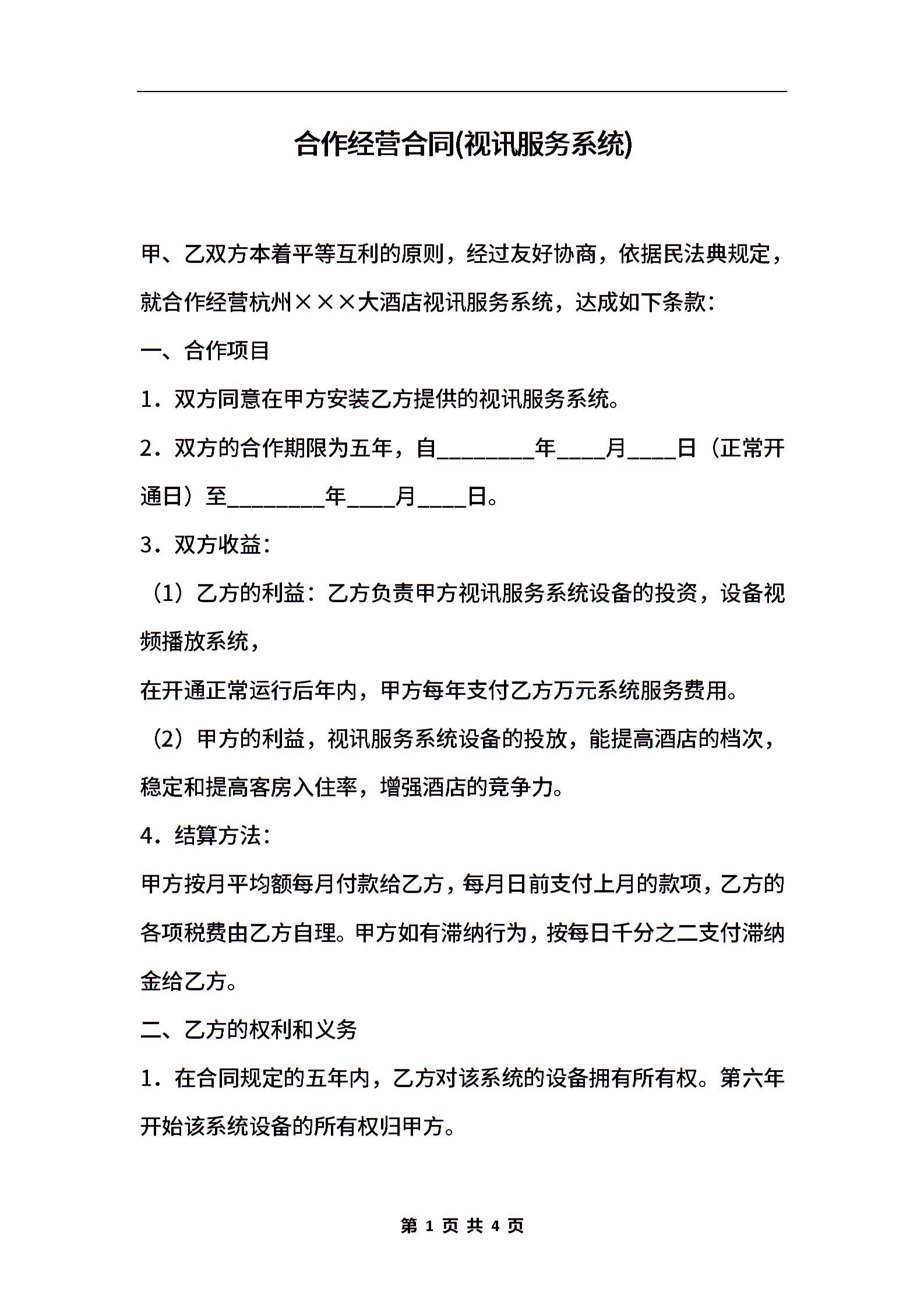 合作经营合同(视讯服务系统)